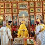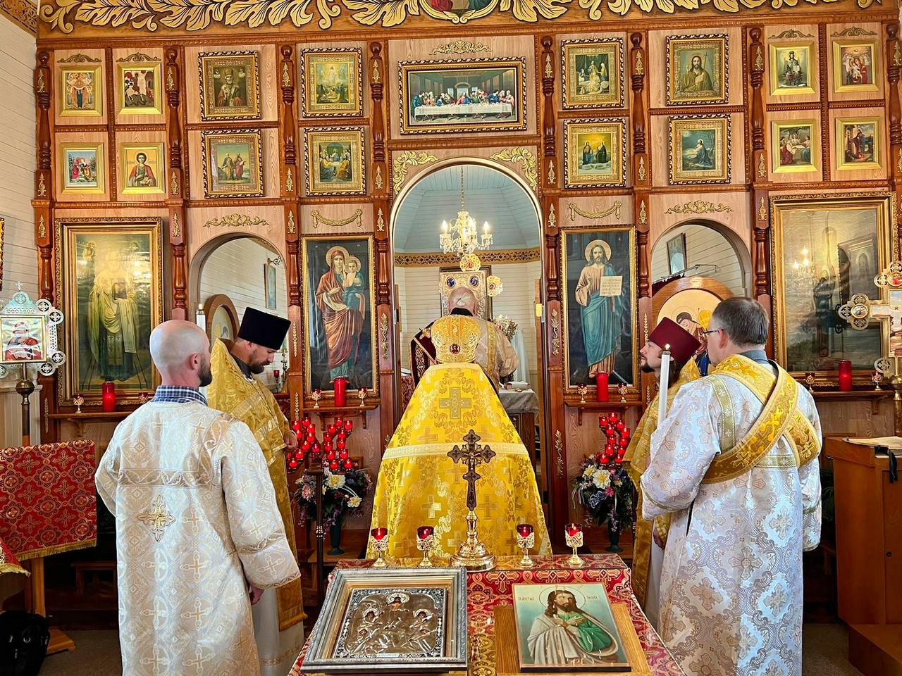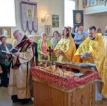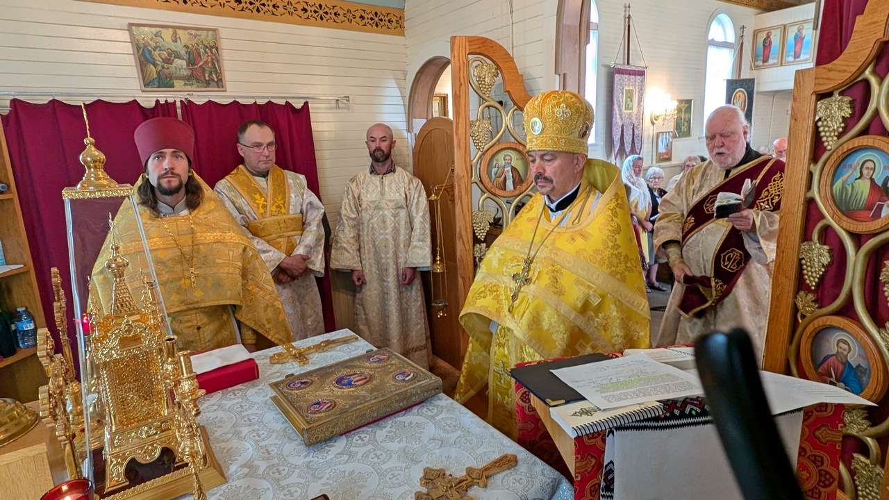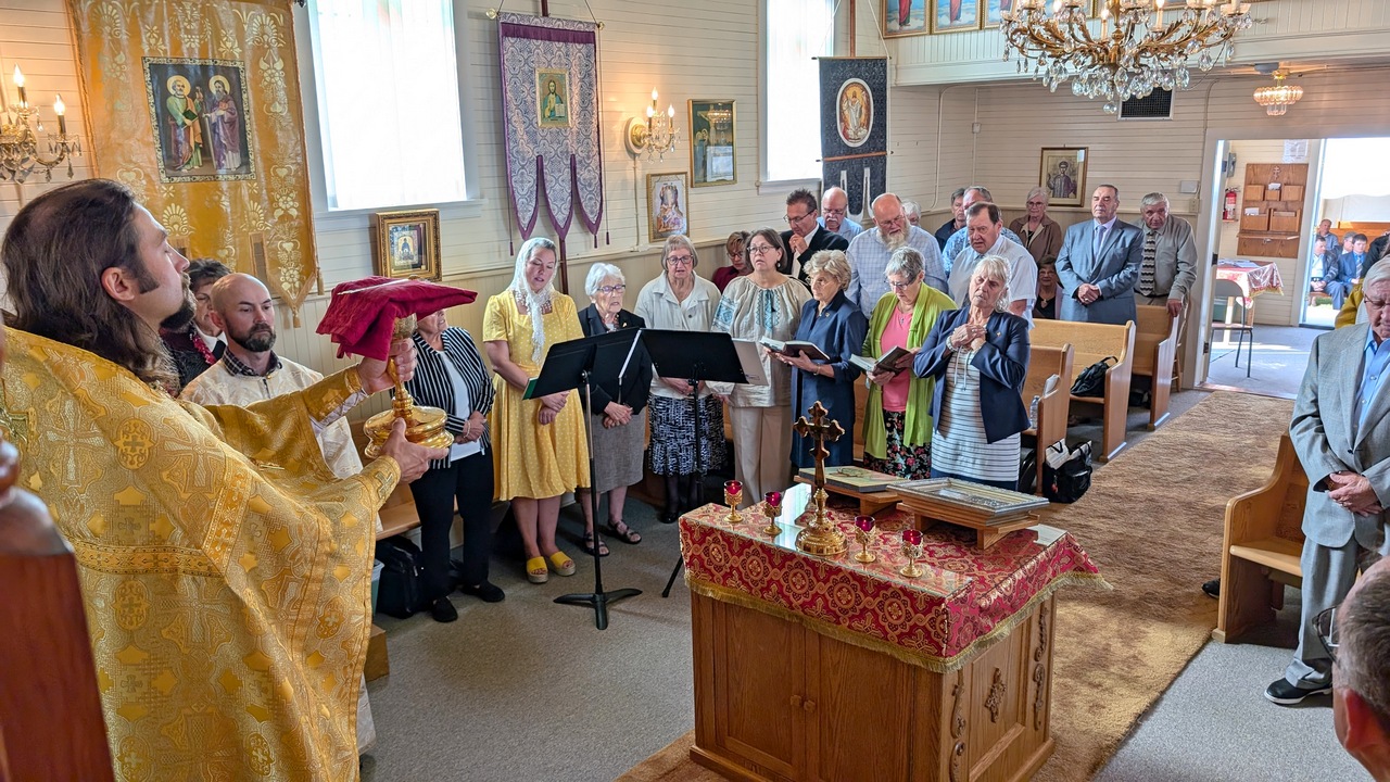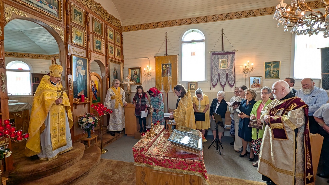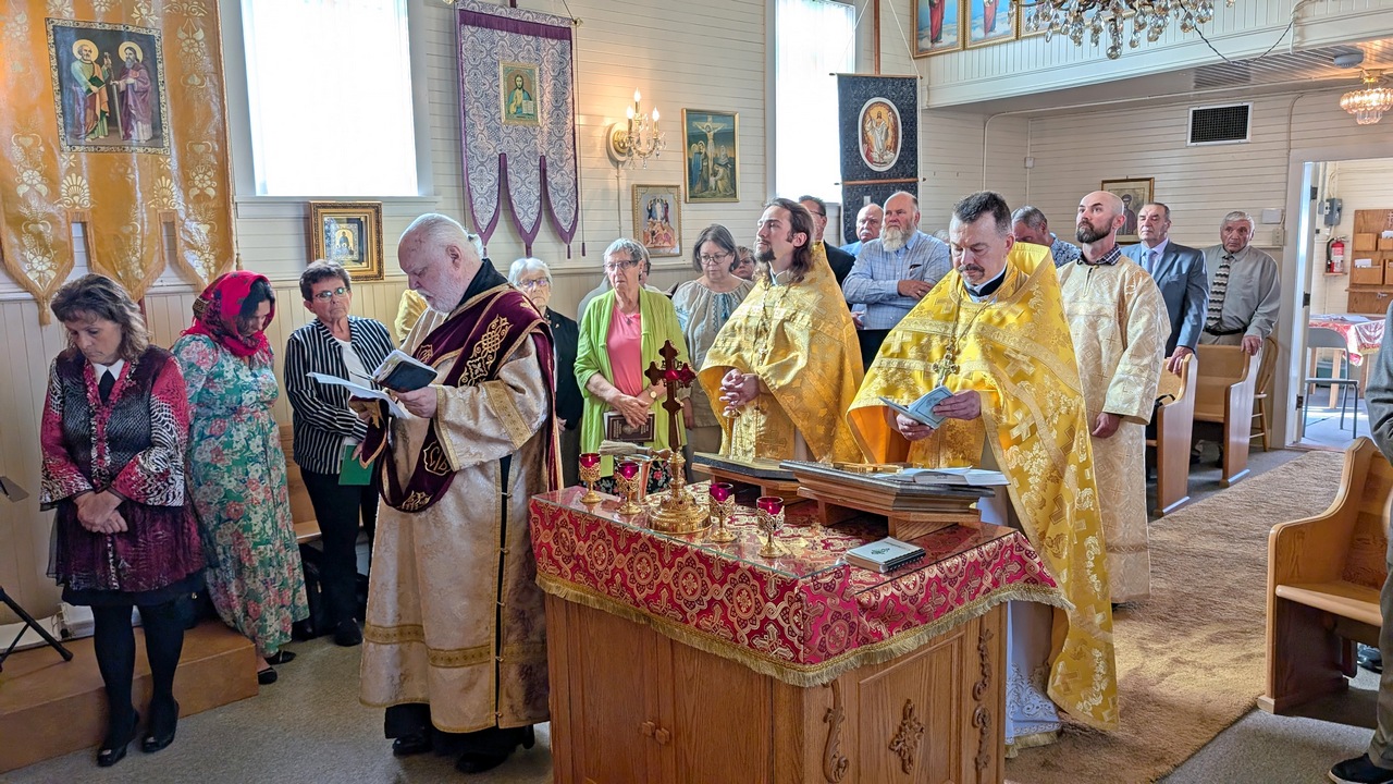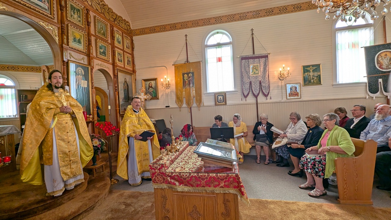 The Divine liturgy was presided by the Dean of the Patriarchal Parishes in Alberta and Saskatchewan and the Rector of St. Barbara’s Cathedral, Father Igor Kisil, co-served by the Rector of this church and the Orthodox V Parishes Father Alexiy Suraev, the Rector of the Orthodox IX Parishes archpriest Yevheniy Protsenko, and Protodeacon Andrey Boldireff, with the help of altar helpers of the church, and with the beautiful singing of the joint church choir of Orthodox V Parishes under the direction of Andrea Zacharuk.