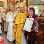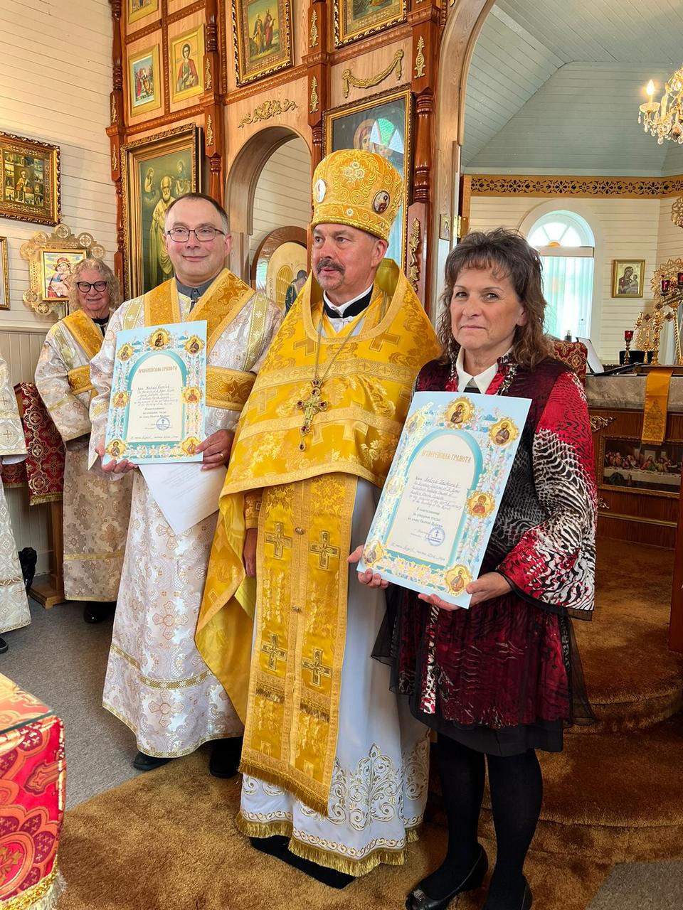 The Archpastoral Certificates of Merit and Recognition (Bishop’s Gramotas) were awarded to the Church Board and the Parishioners of the Holy Church, to the President of St. Jacob’s Church at Mundare Michael Koroluk, and to Andrea Zacharuk, the Secretary-Treasurer of St. Jacob’s Church at Mundare, on occasion of 120 Anniversary of the Founding of the Parish and in recognition of dedication and great labours, and zealous efforts in maintaining Christian life and supporting the Holy Church of God.