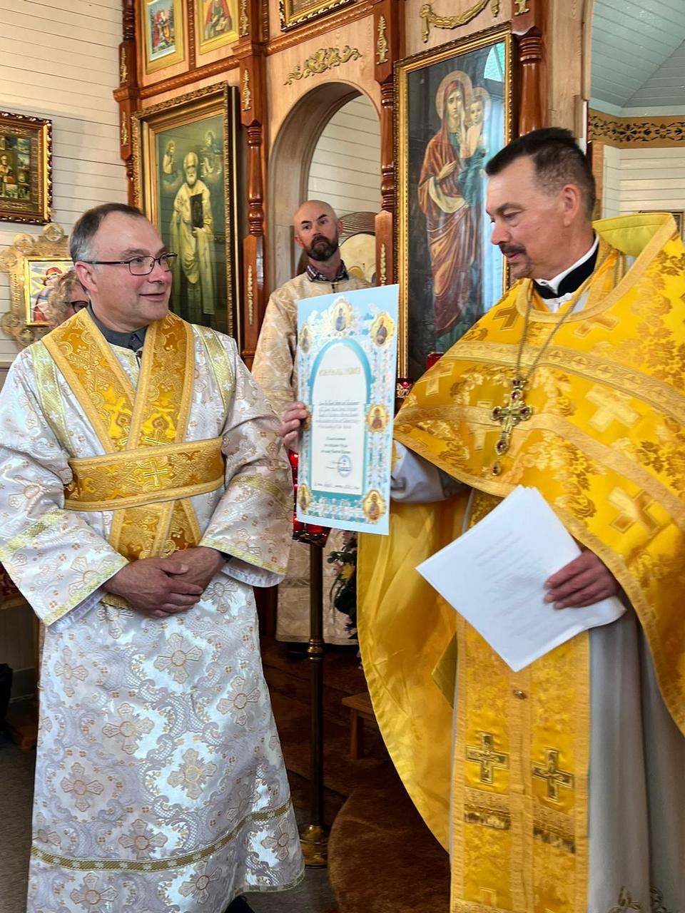 Then the Dean of the Patriarchal Parishes in Alberta and Saskatchewan and the Rector of St. Barbara’s Cathedral, Father Igor Kisil read the Congratulation Message of His Grace Bishop Matthew of Sourozh and Temporary Administrator of the Patriarchal Parishes in the United States and Canada to the clergy and parishioners of the parish of the Apostle James, the brother of the Lord, in Mundare: