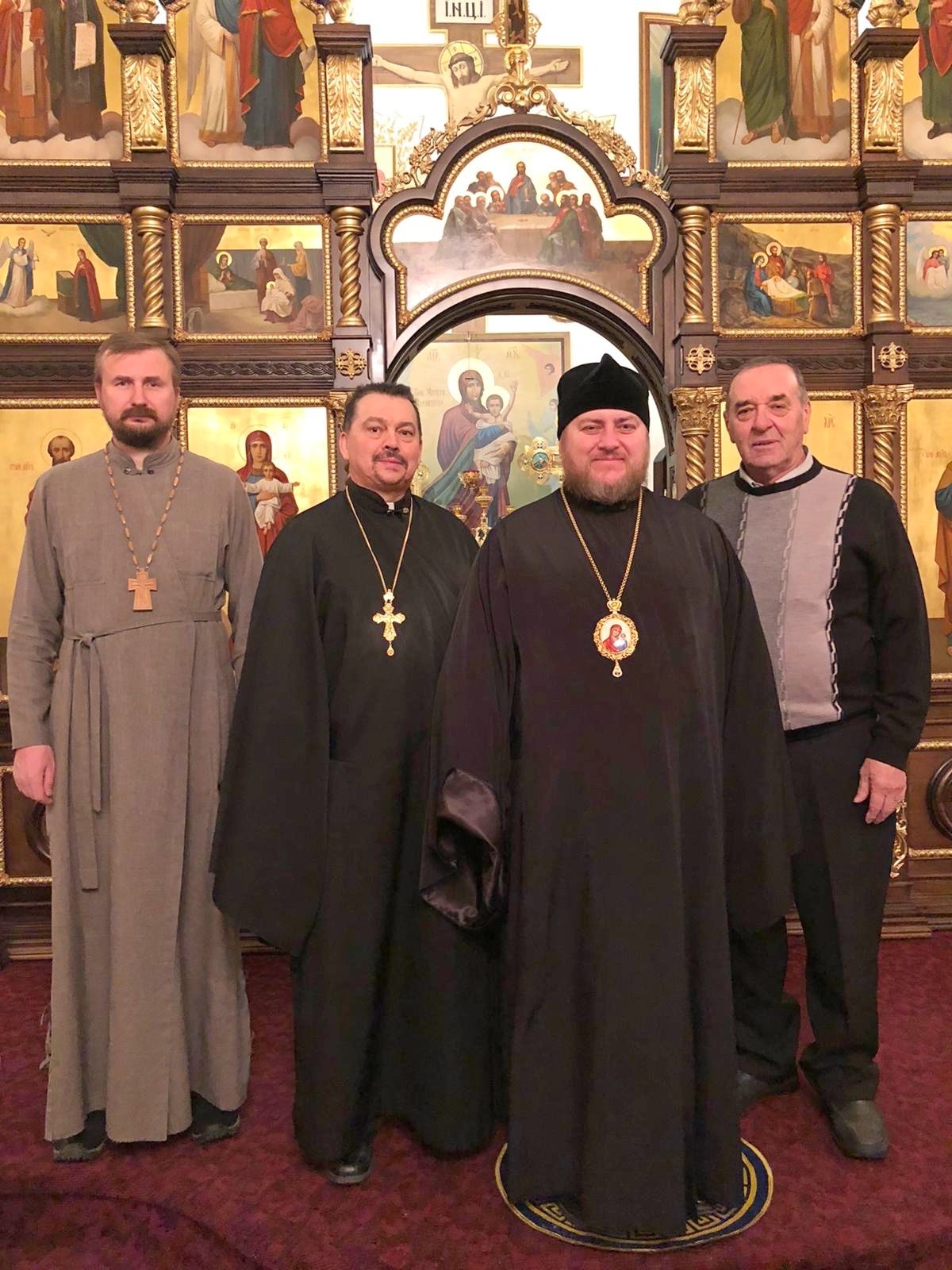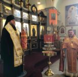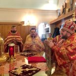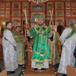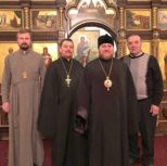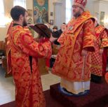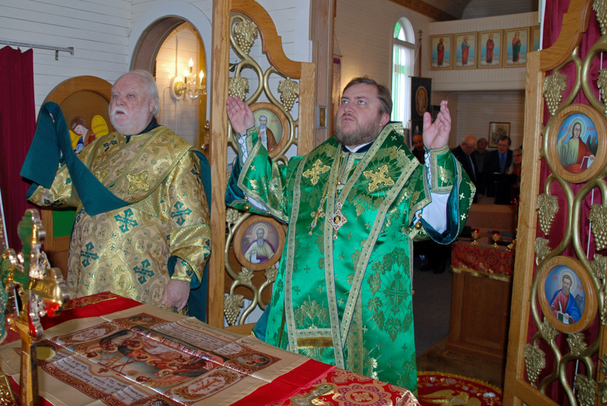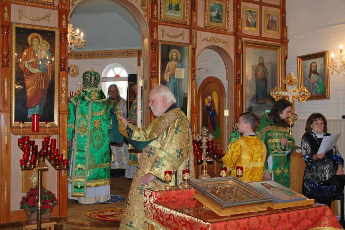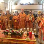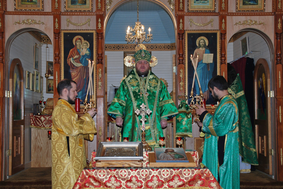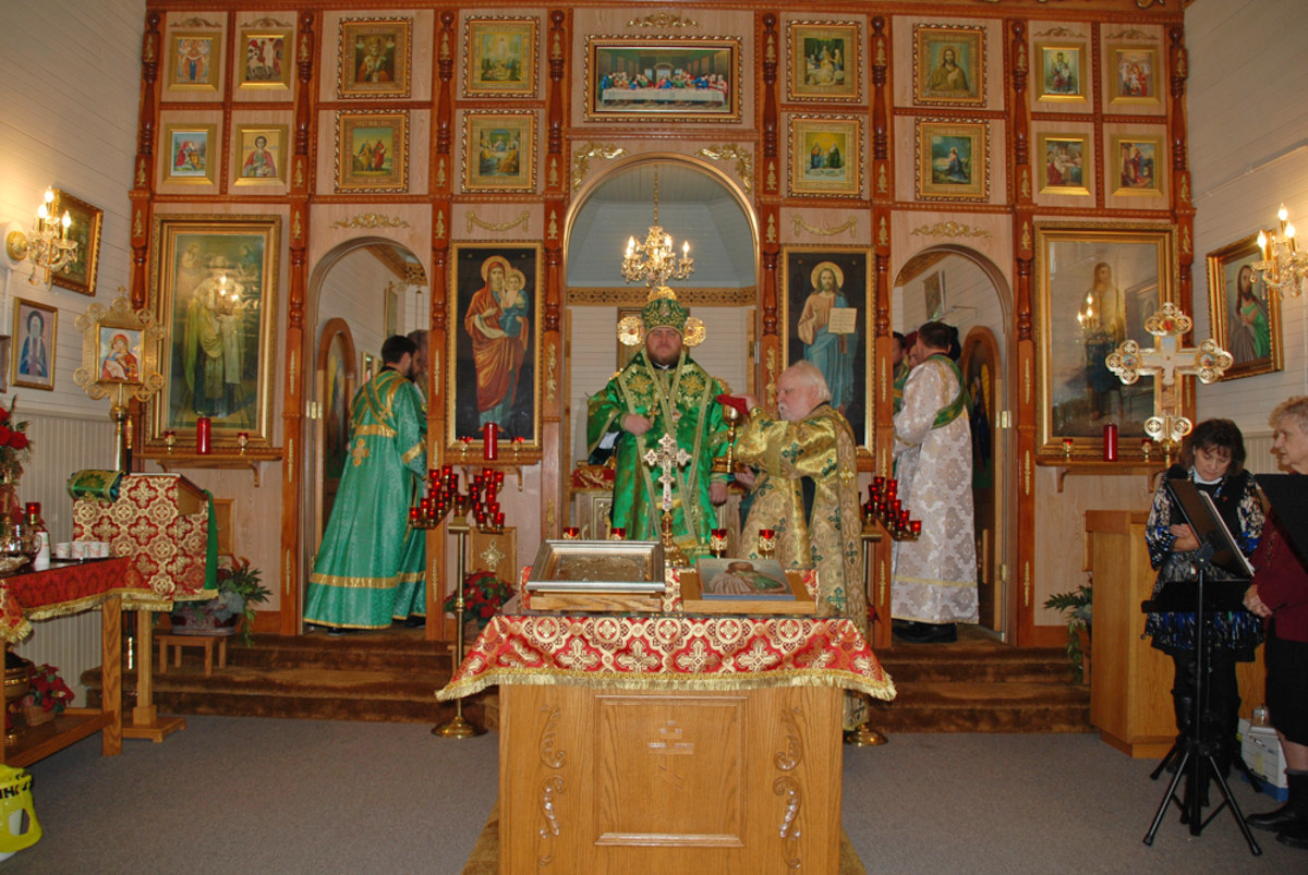 Его Преосвященству сослужили: благочинный Патриарших приходов в Канаде, настоятель Свято-Варваринского кафедрального собора города Эдмонтона протоиерей Игорь Кисиль, протоиерей Виталий Маноли и диакон Андрей Болдырев.
