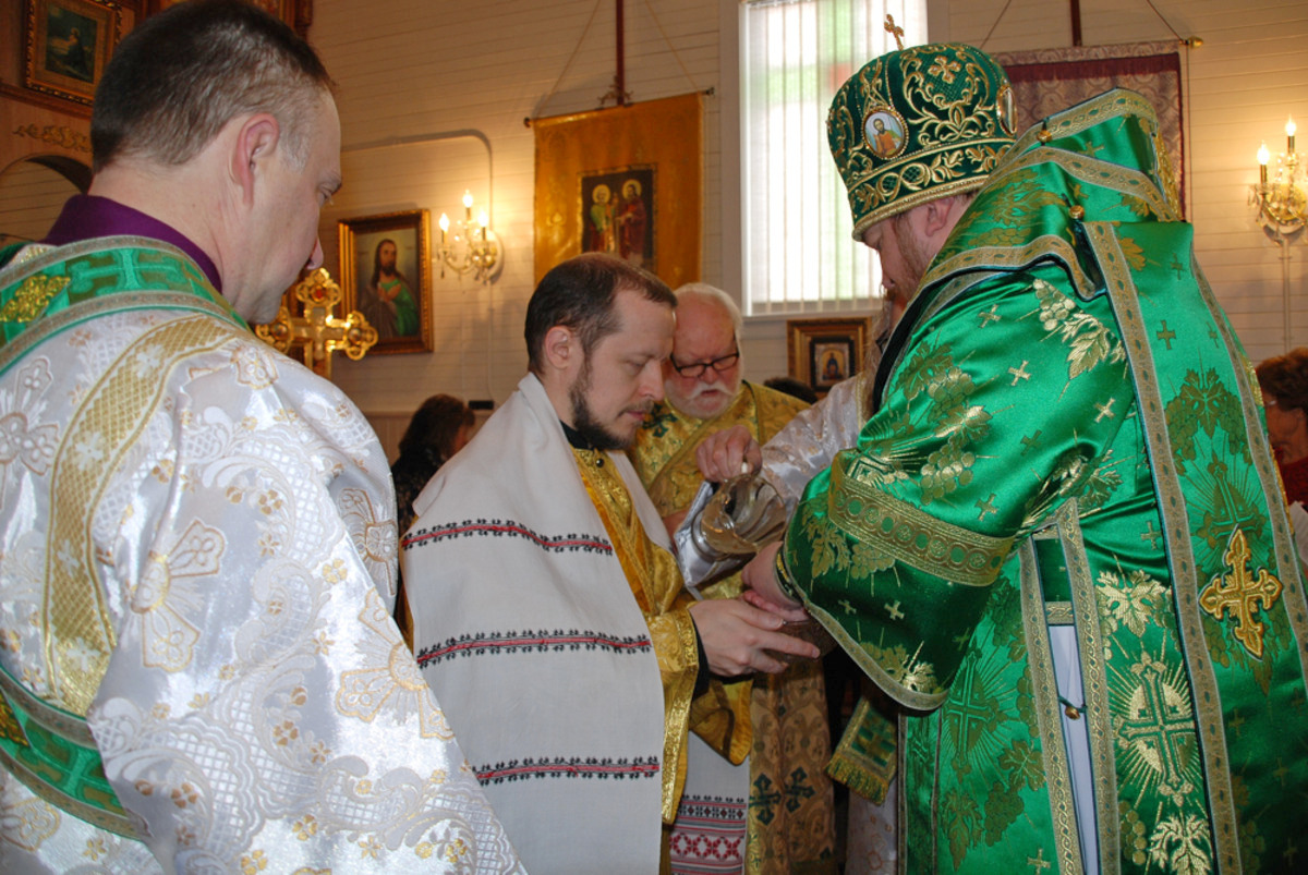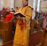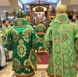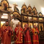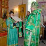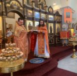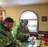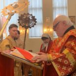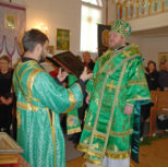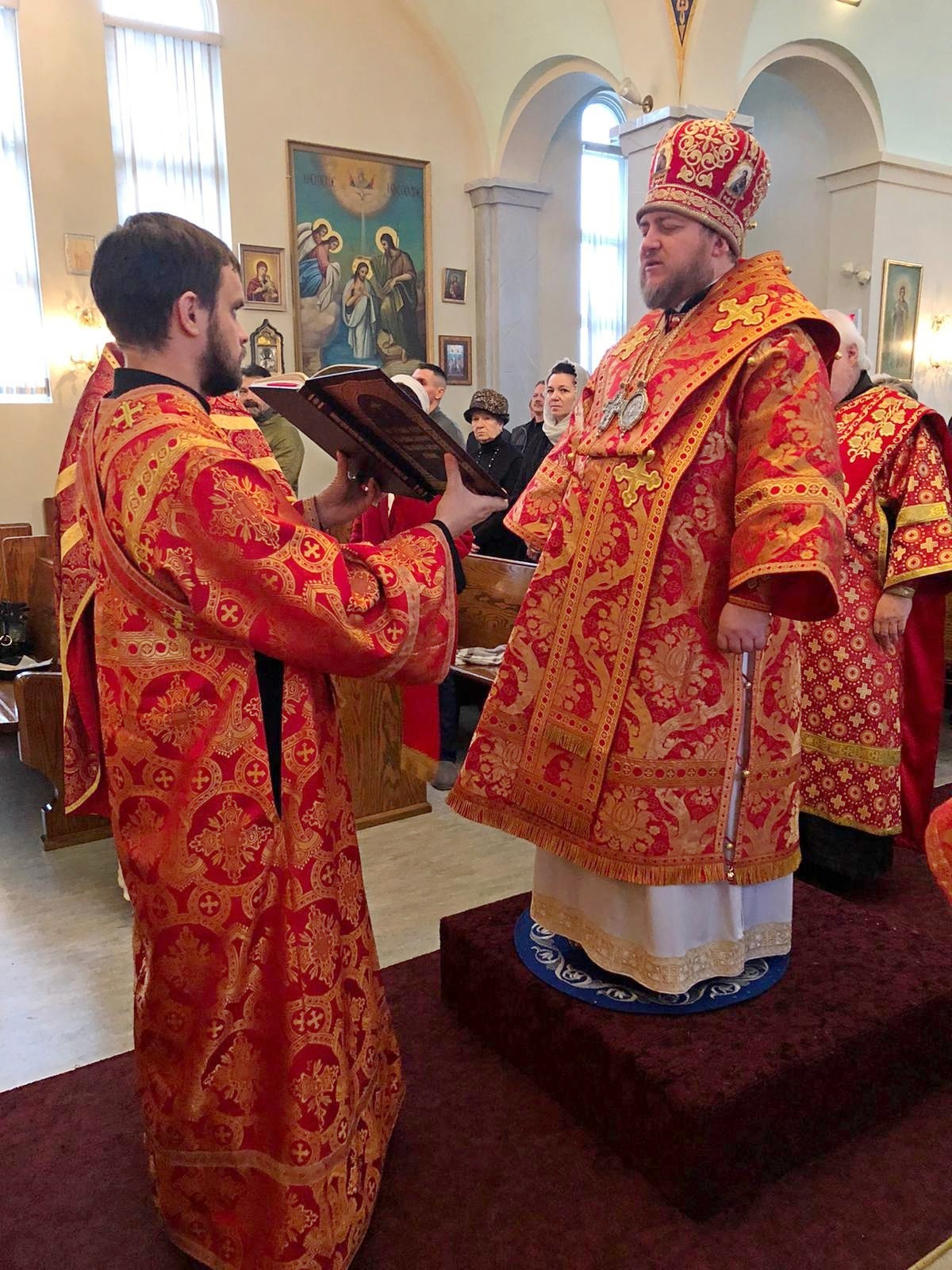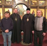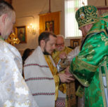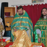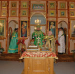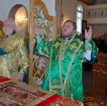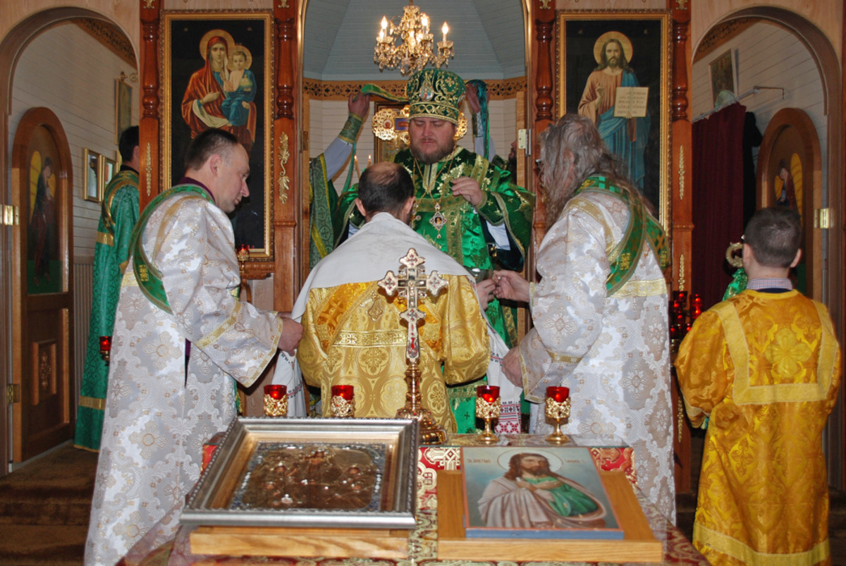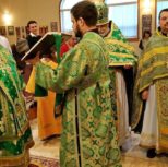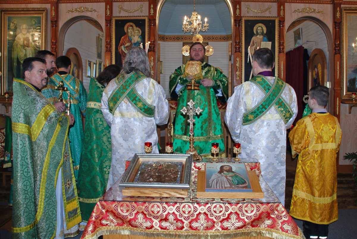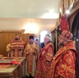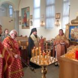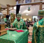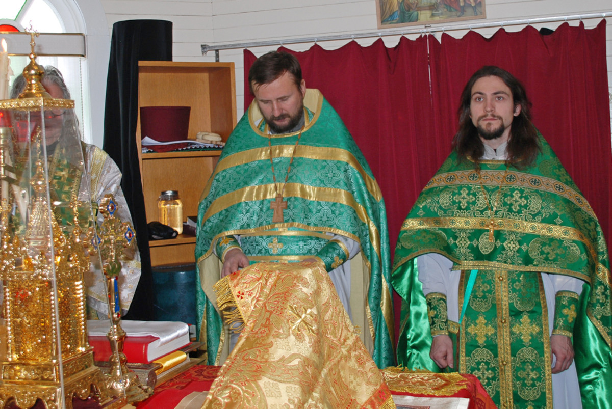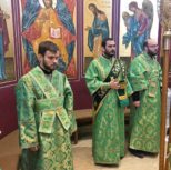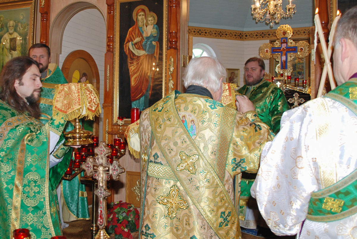 Его Преосвященству сослужили: благочинный Патриарших приходов в Канаде, настоятель Свято-Варваринского кафедрального собора города Эдмонтона протоиерей Игорь Кисиль, протоиерей Виталий Маноли и диакон Андрей Болдырев.