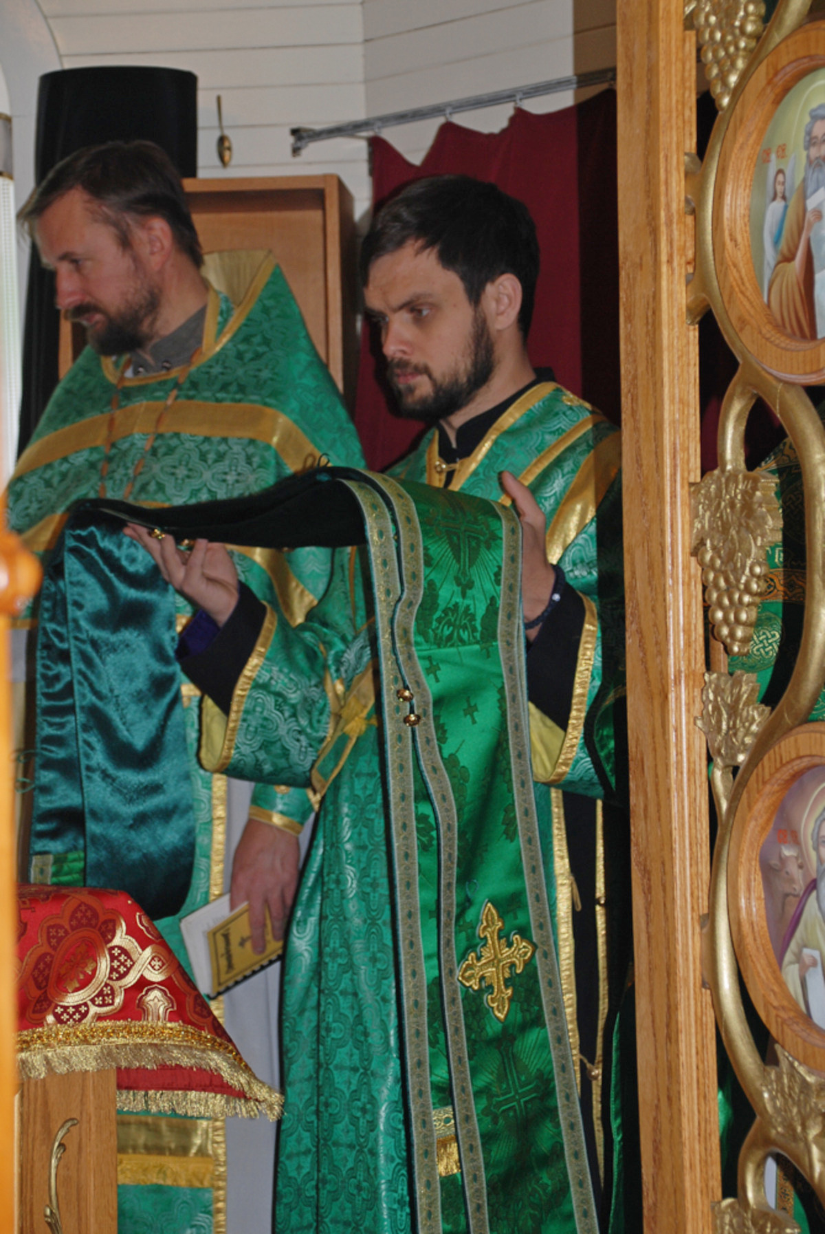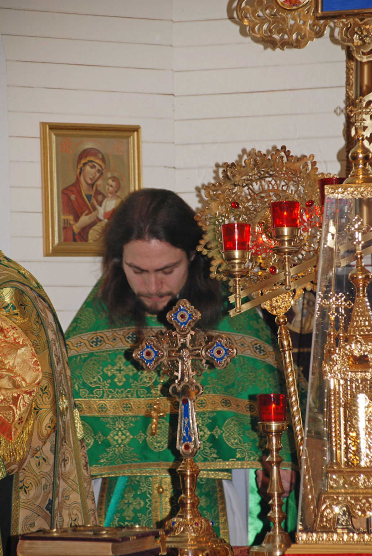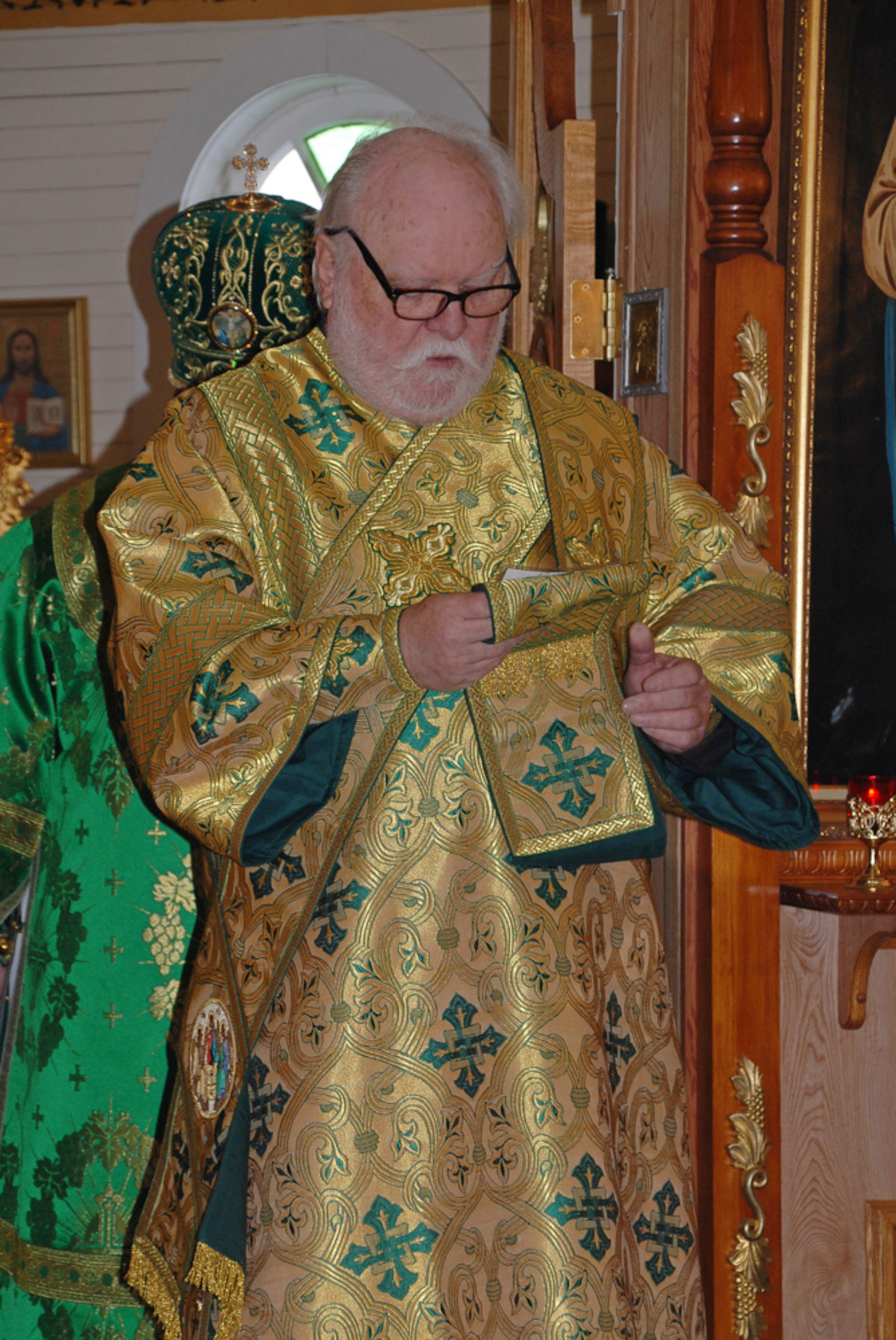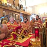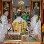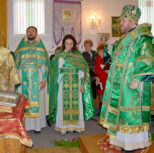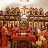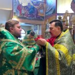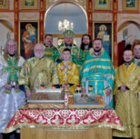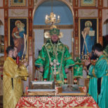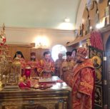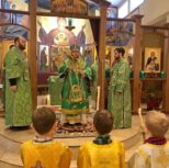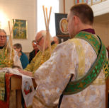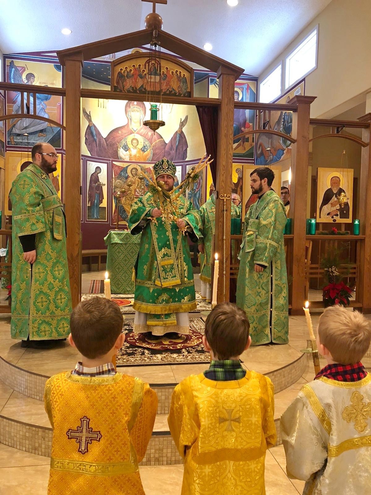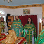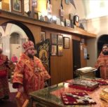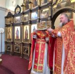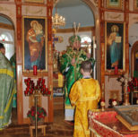 Его Преосвященству сослужили: благочинный Патриарших приходов в Канаде, настоятель Свято-Варваринского кафедрального собора города Эдмонтона протоиерей Игорь Кисиль, протоиерей Виталий Маноли и диакон Андрей Болдырев.