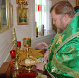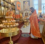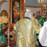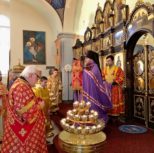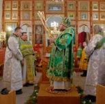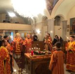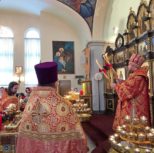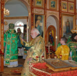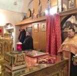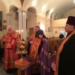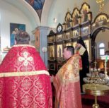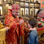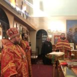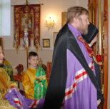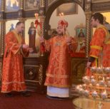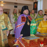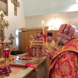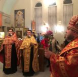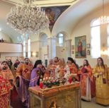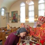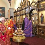 На утрене всенощного бдения, после чтения Святого Евангелия, Преосвященный Владыка помазал духовенство и прихожан освященным елеем.