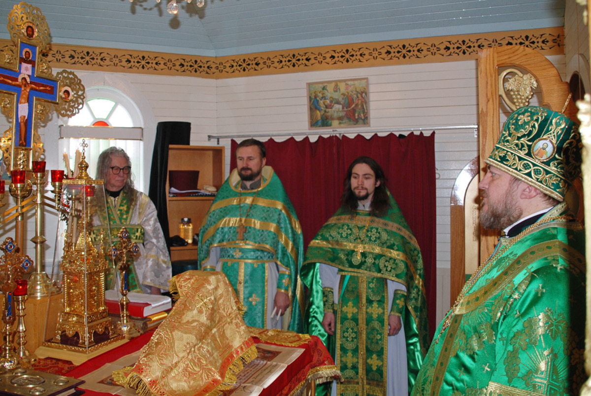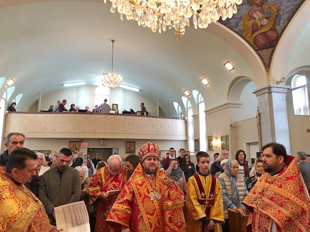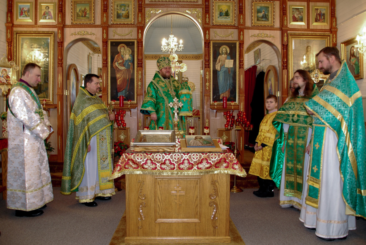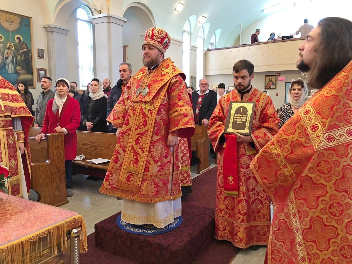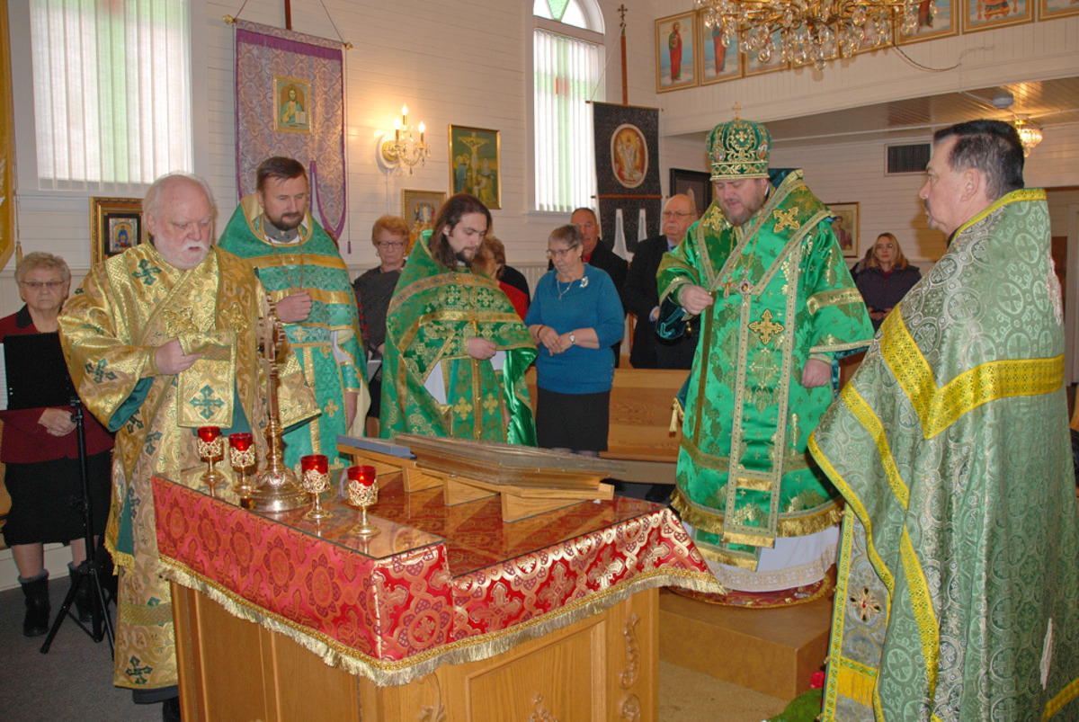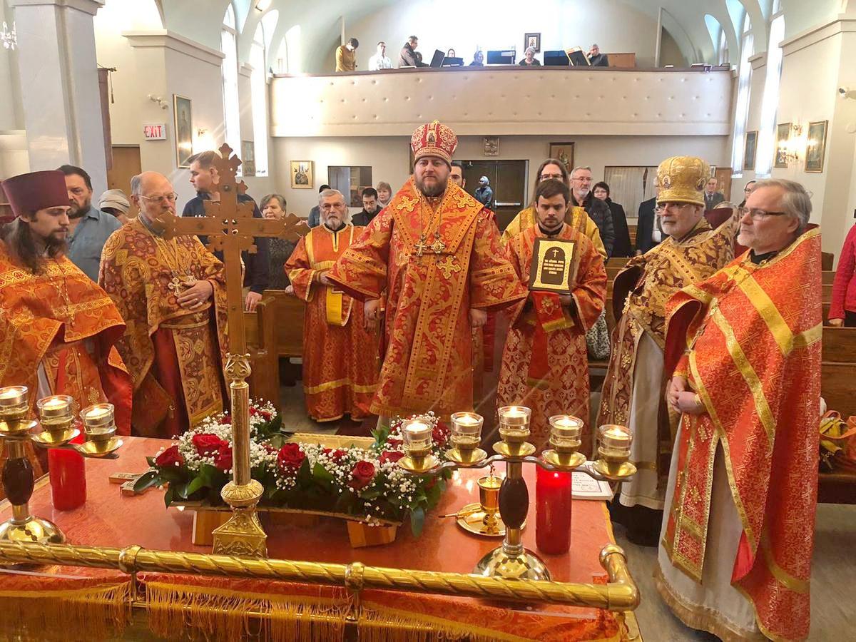 Преосвященному Владыке сослужили: настоятель Приходского округа «Ортодокс V» иерей Алексий Сураев, благочинный Патриарших приходов в Канаде протоиерей Игорь Кисиль, настоятель Приходского округа «Ортодокс IX» протоиерей Евгений Проценко и диакон Андрей Болдырев.