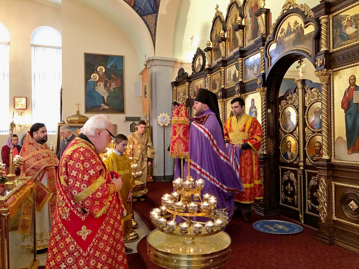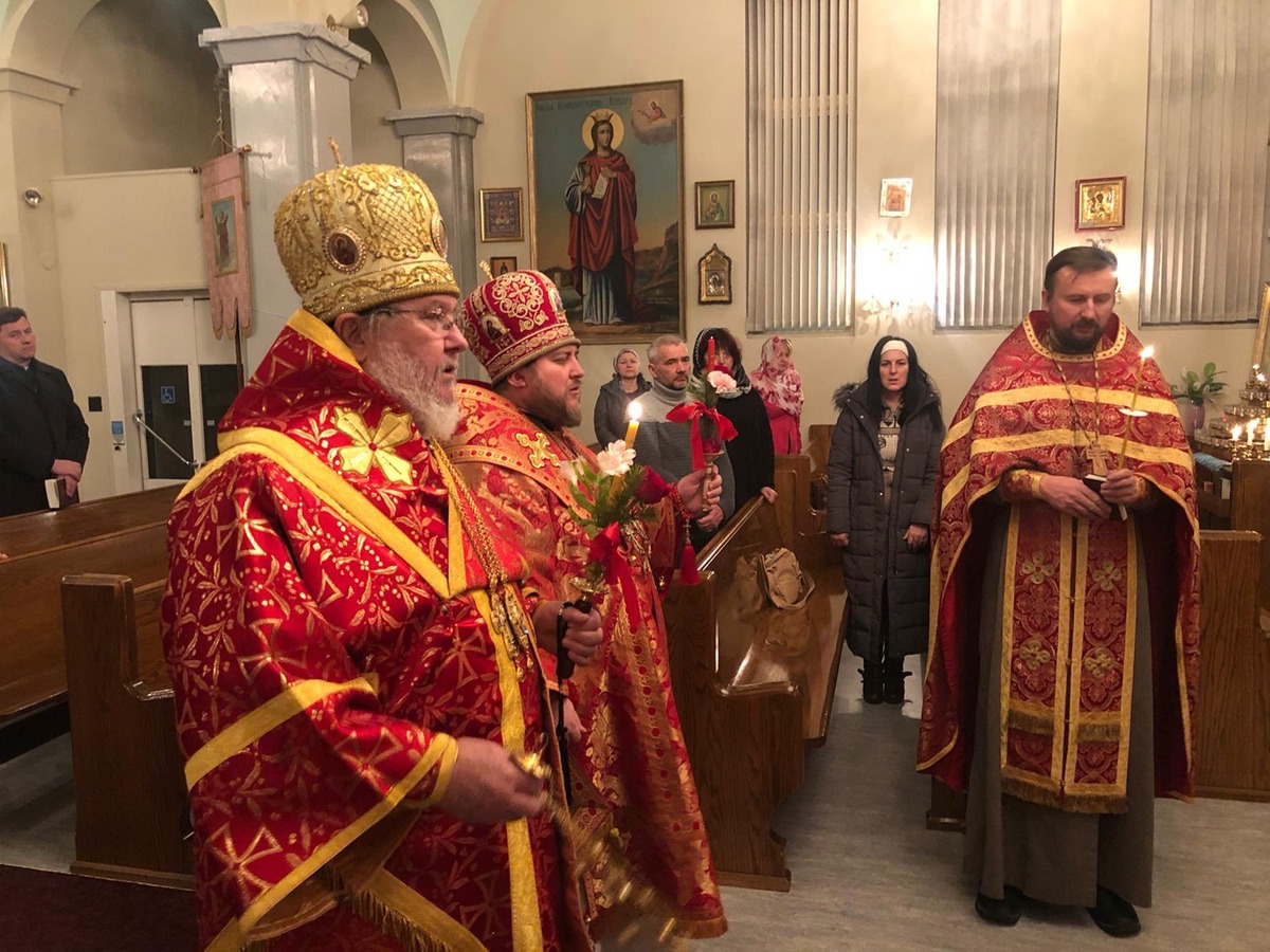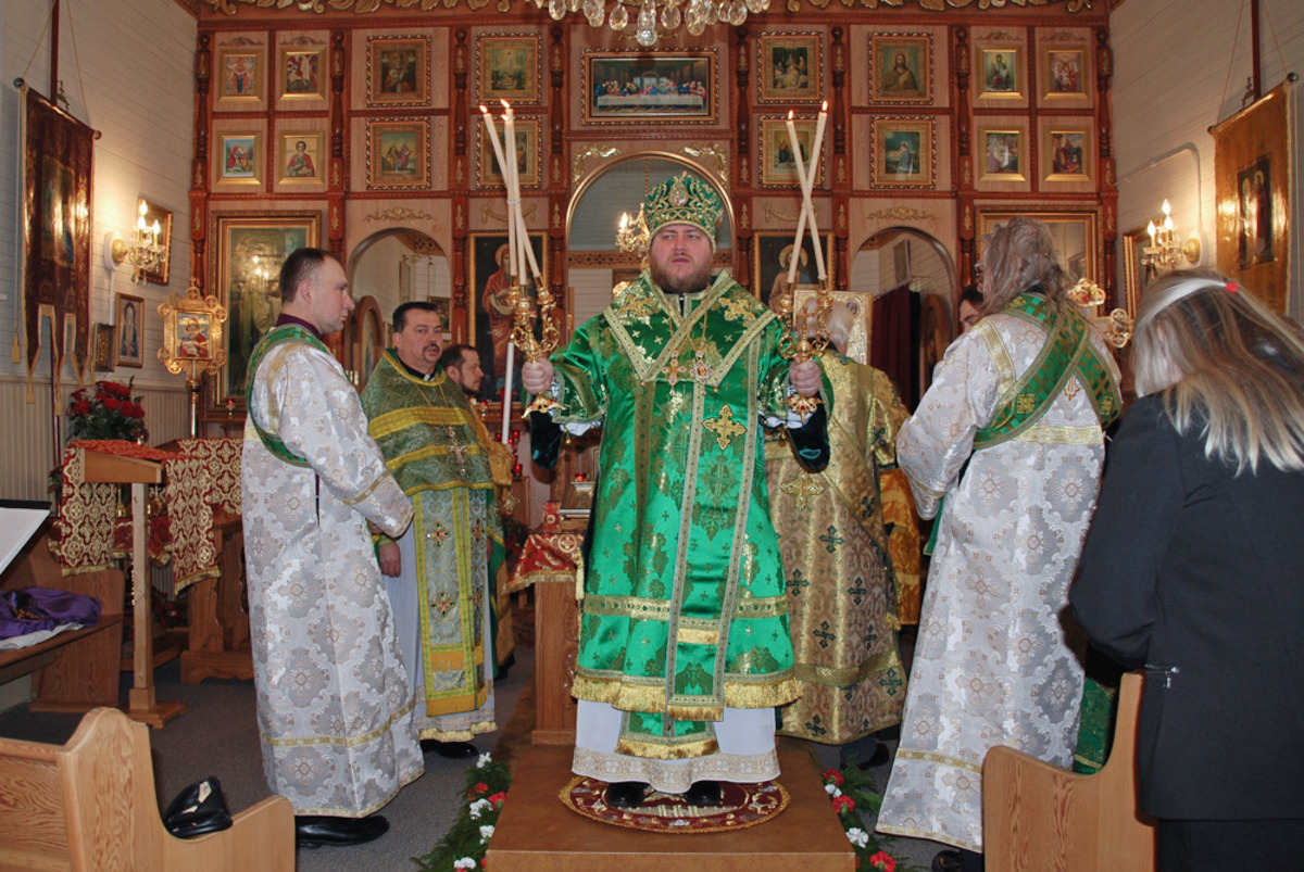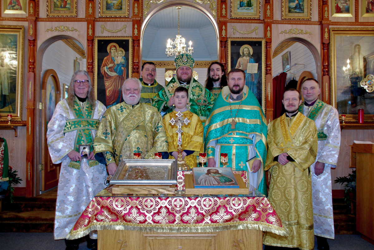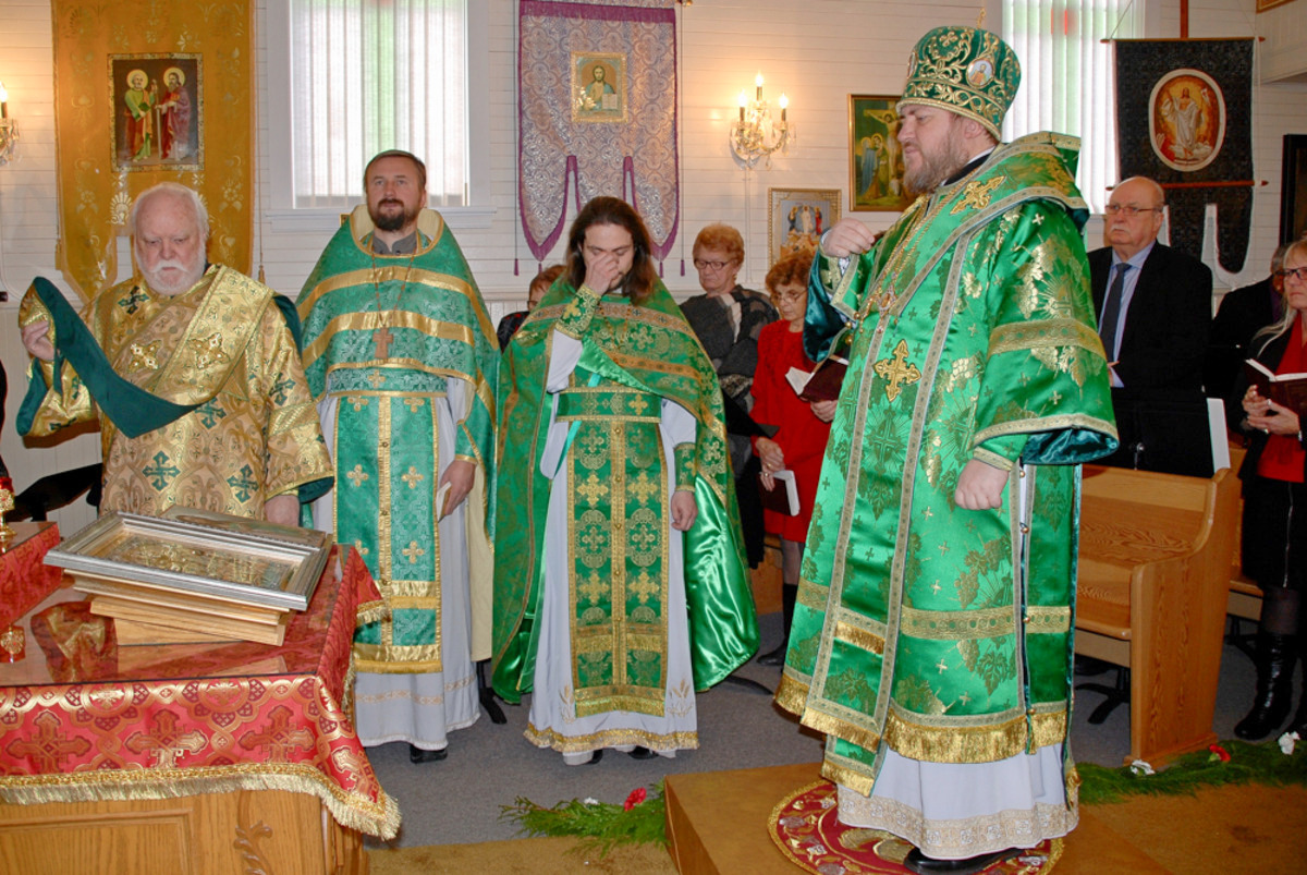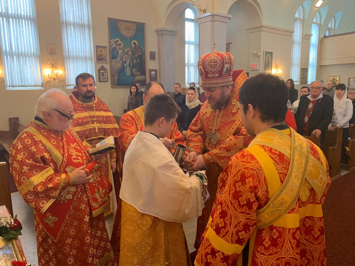 Преосвященному Владыке сослужили: настоятель Приходского округа «Ортодокс V» иерей Алексий Сураев, благочинный Патриарших приходов в Канаде протоиерей Игорь Кисиль, настоятель Приходского округа «Ортодокс IX» протоиерей Евгений Проценко и диакон Андрей Болдырев.