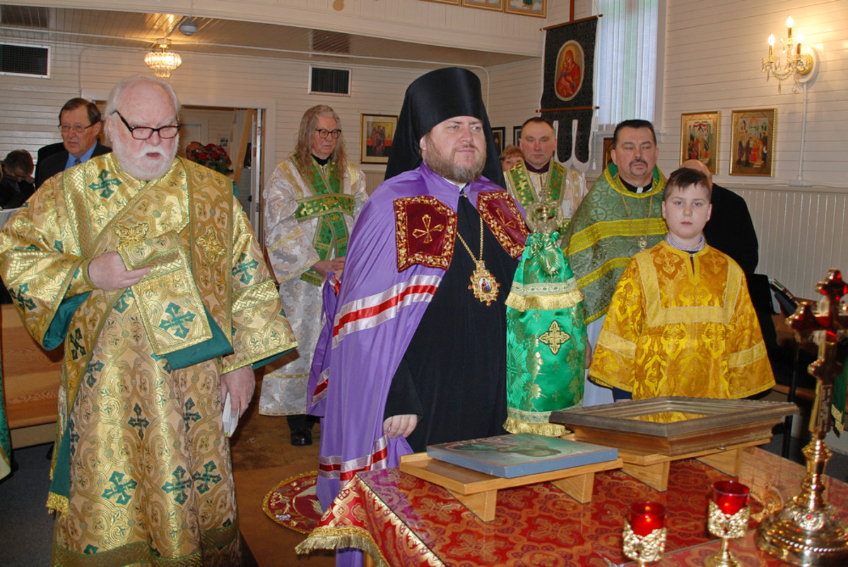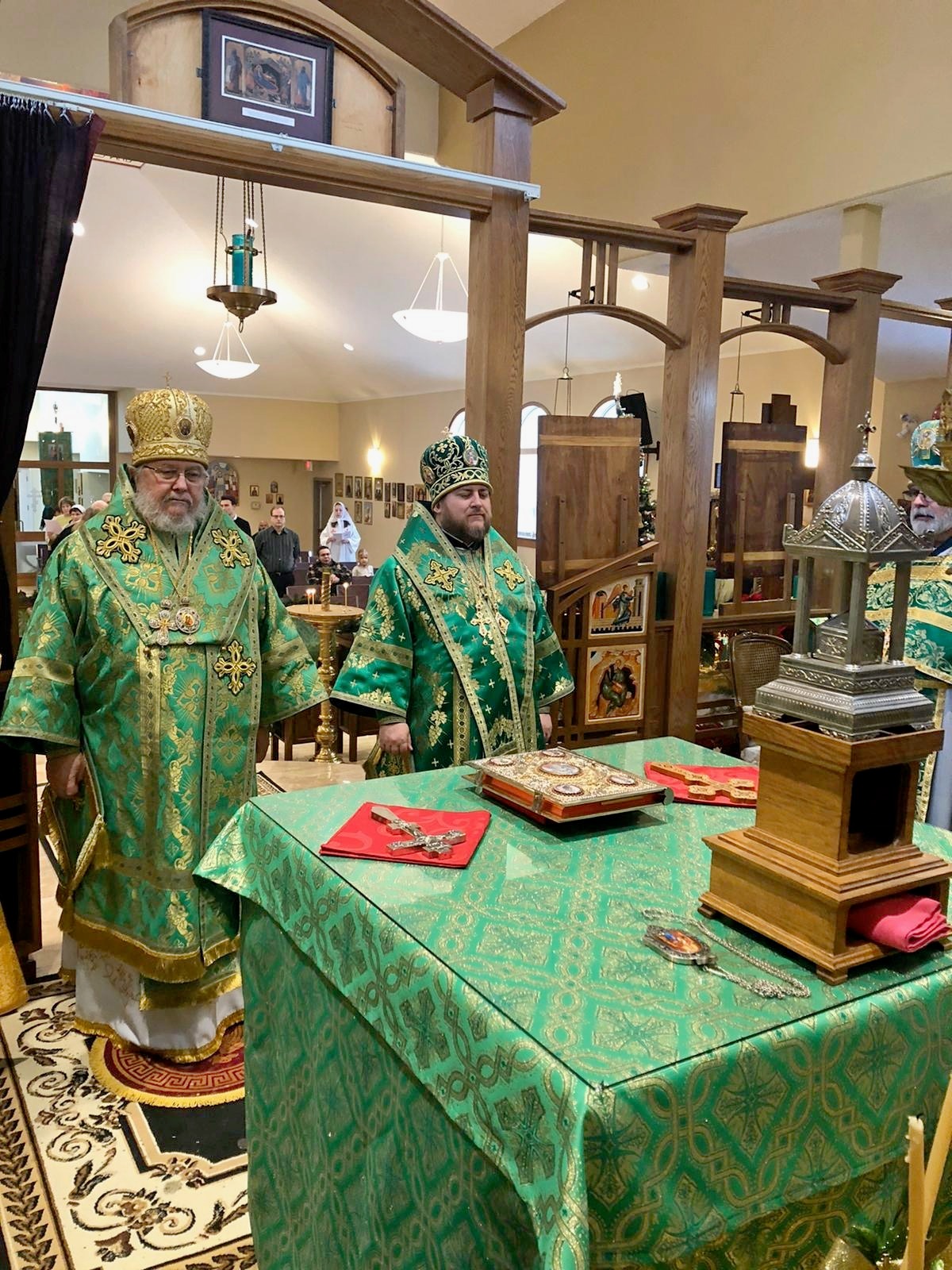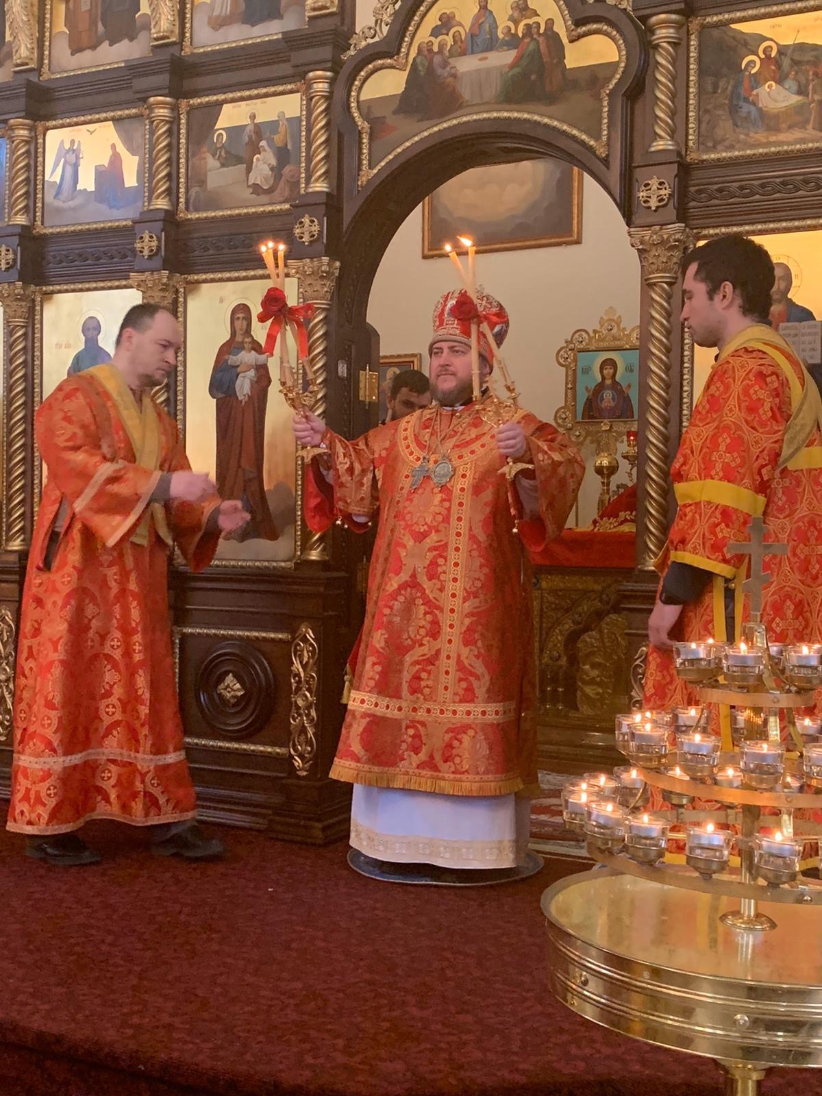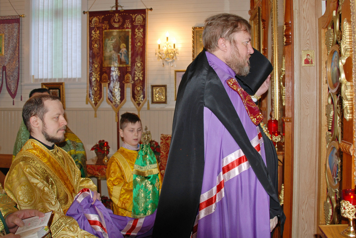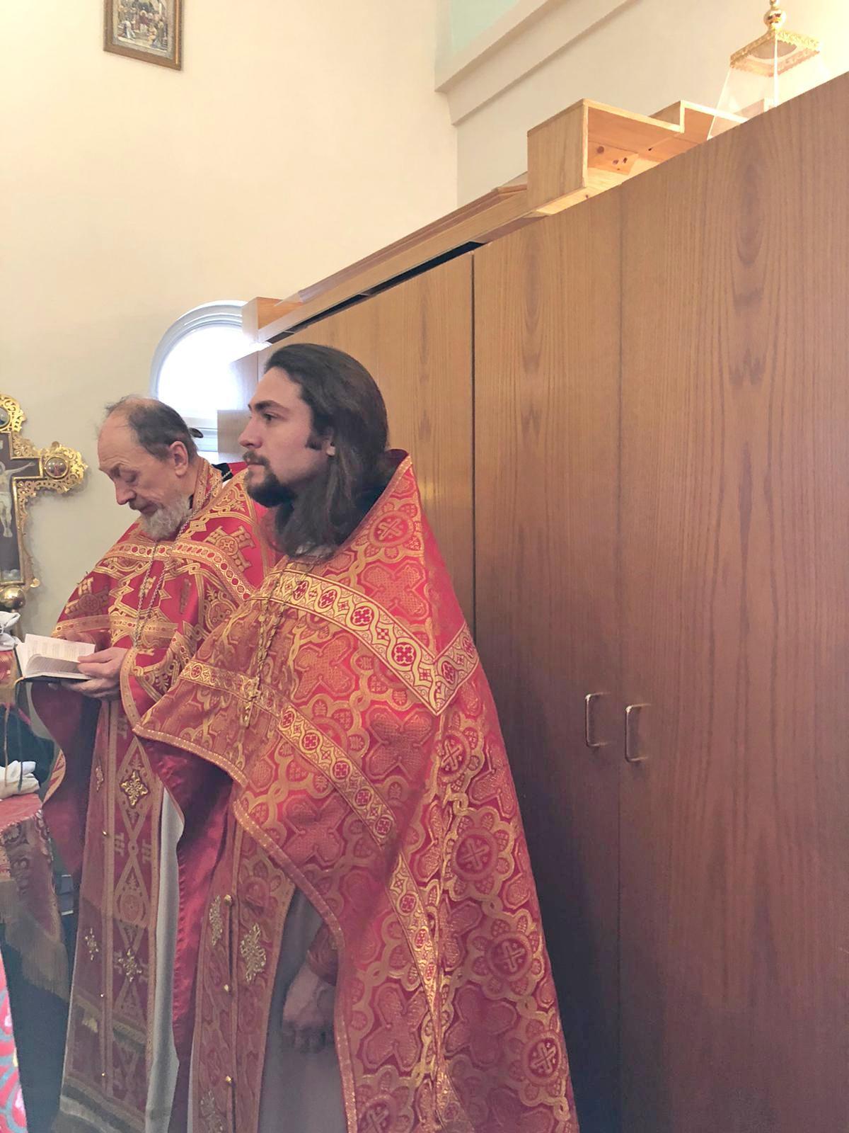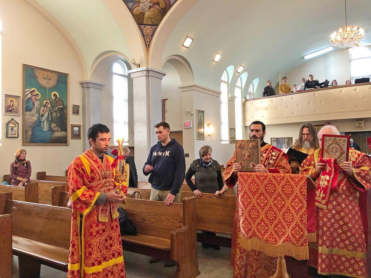 Преосвященному Владыке сослужили: настоятель Приходского округа «Ортодокс V» иерей Алексий Сураев, благочинный Патриарших приходов в Канаде протоиерей Игорь Кисиль, настоятель Приходского округа «Ортодокс IX» протоиерей Евгений Проценко и диакон Андрей Болдырев.