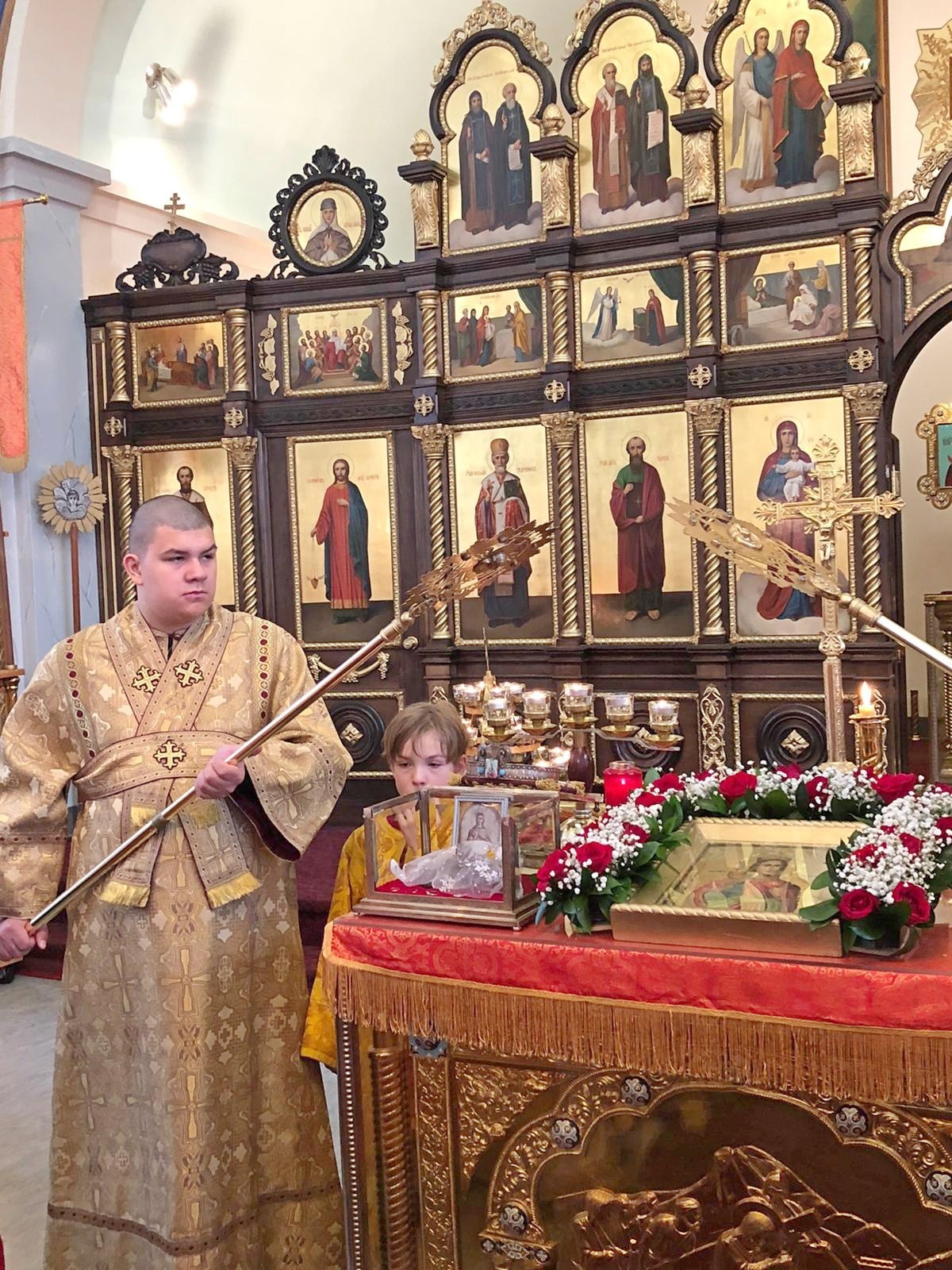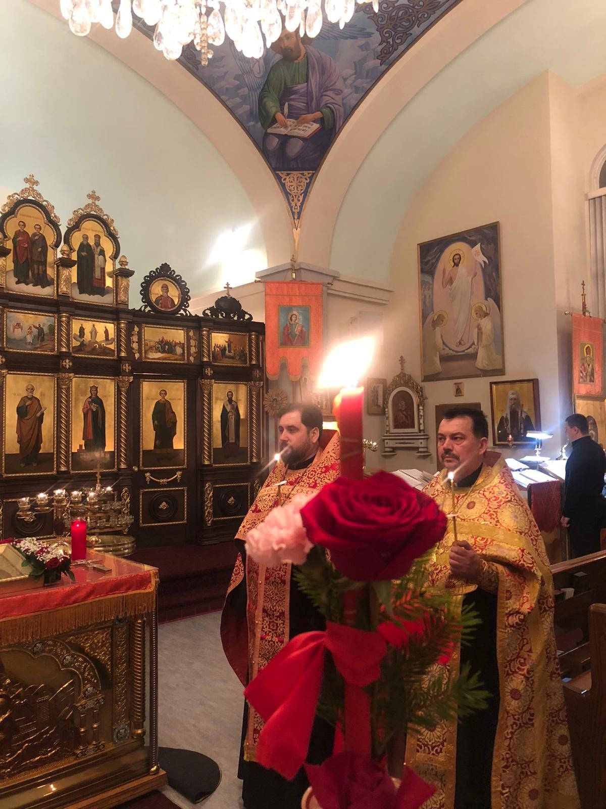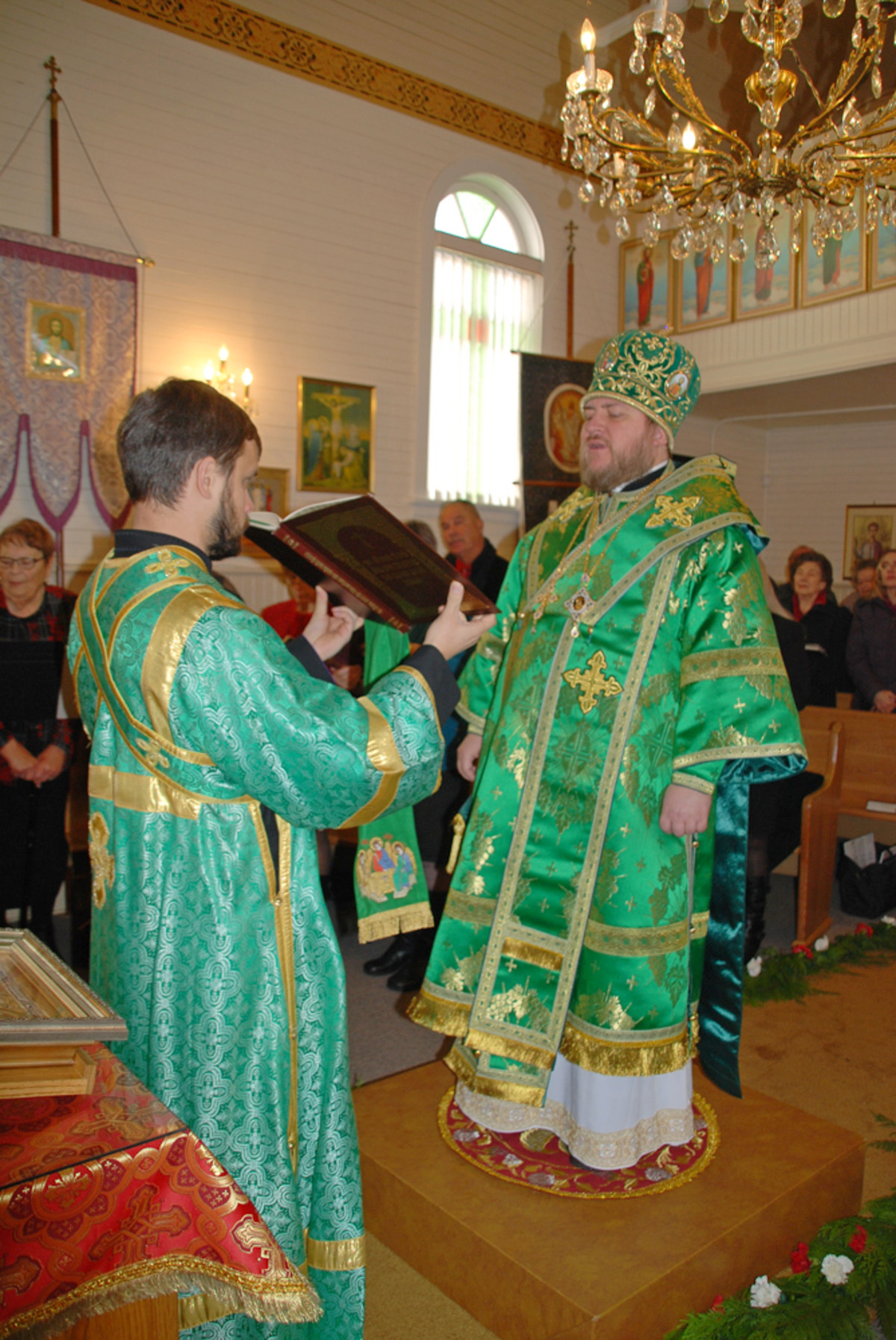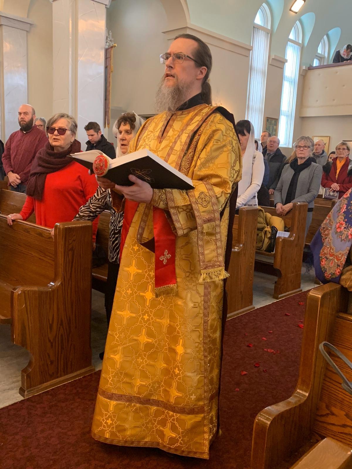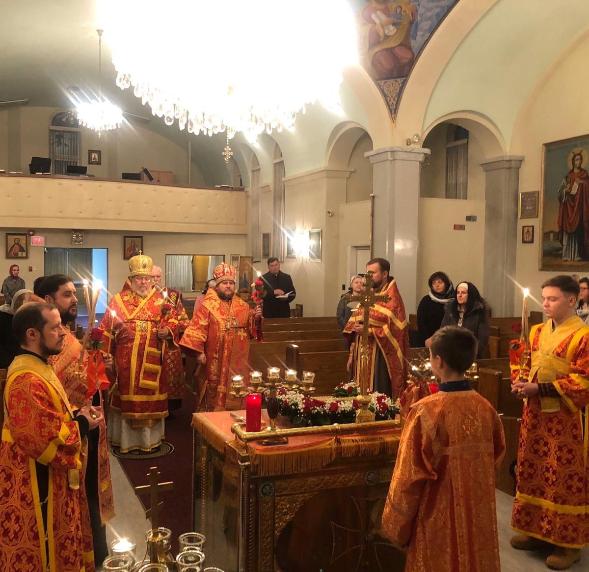 Преосвященному Владыке сослужили: настоятель Приходского округа «Ортодокс V» иерей Алексий Сураев, благочинный Патриарших приходов в Канаде протоиерей Игорь Кисиль, настоятель Приходского округа «Ортодокс IX» протоиерей Евгений Проценко и диакон Андрей Болдырев.
