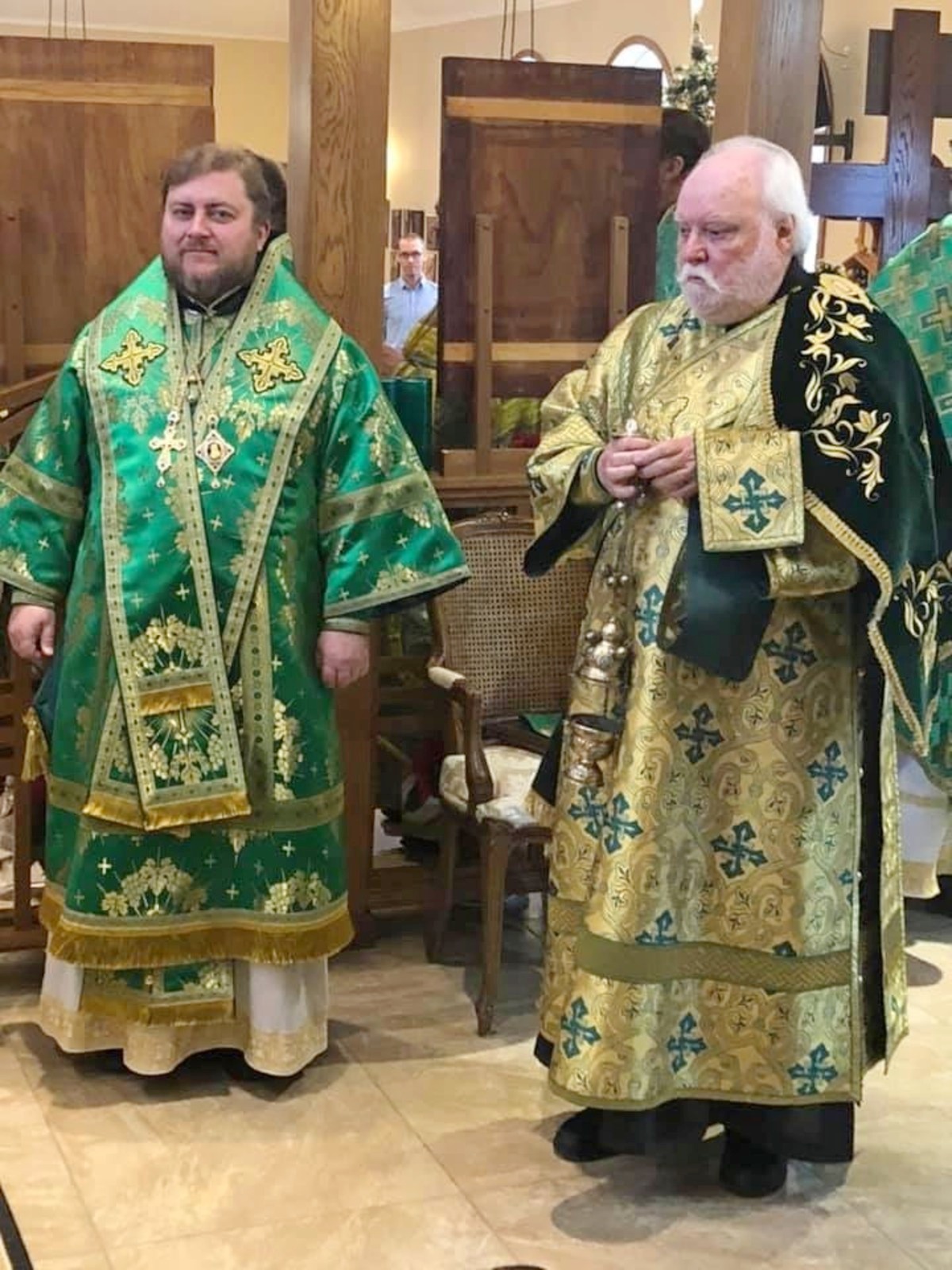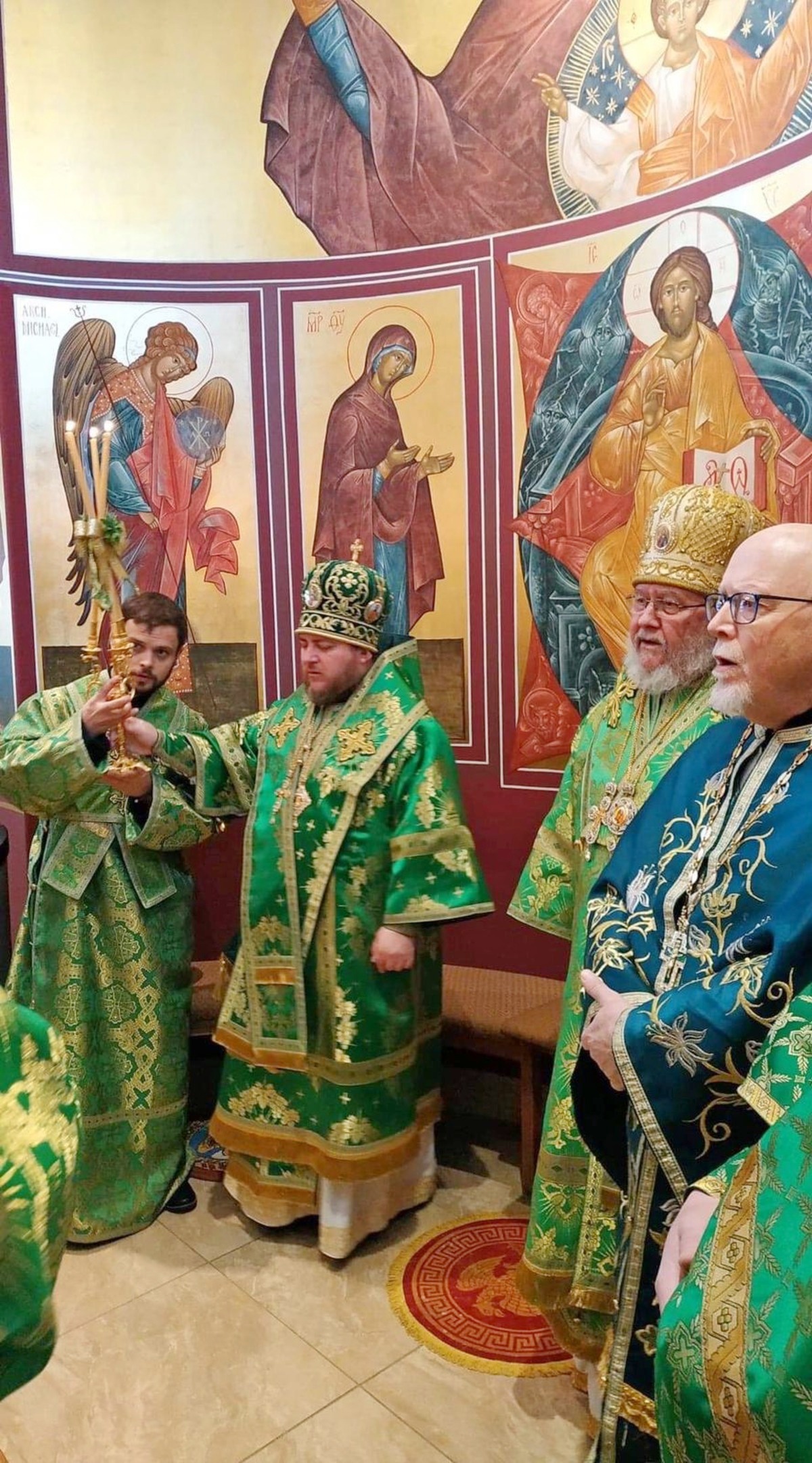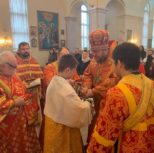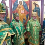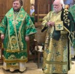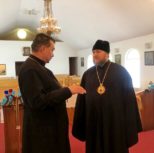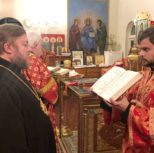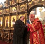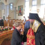 По завершении богослужения Владыка Матфей тепло приветствовал Владыку Иринея, поблагодарил его за возможность общей молитвы и преподнес в подарок на память о совместной службе святую панагию.