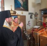 Преосвященный Владыка помолился перед образом и частью мощей святой великомученицы Варавары, после чего состоялось общение с духовенством и приходским советом Кафедрального собора.