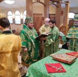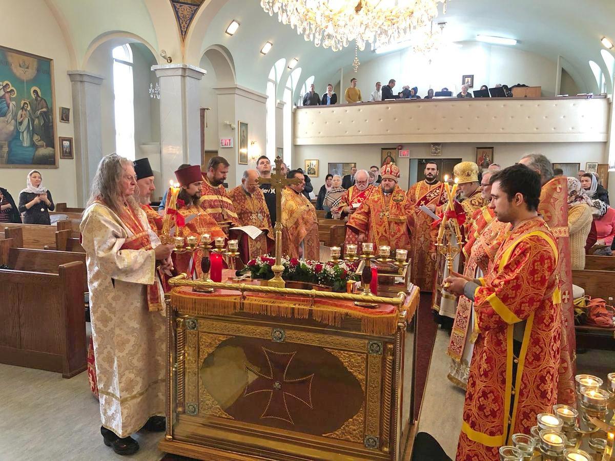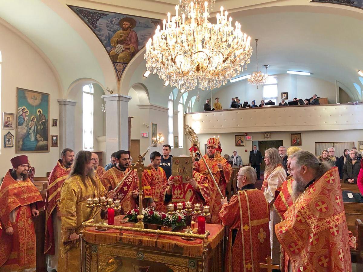 Архипастырям сослужили клирики Патриарших приходов в Канаде и Православной Церкви в Америке.