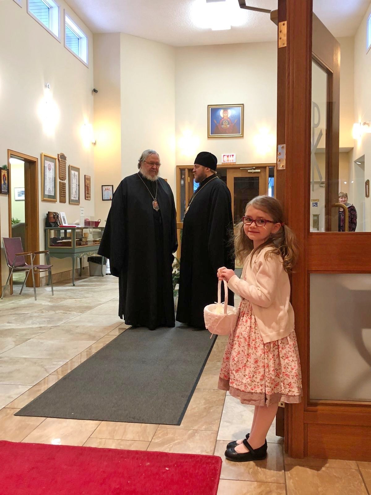 В Варваринском кафедральном соборе архипастыря встречали благочинный Патриарших приходов в Канаде, настоятель собора протоиерей Игорь Кисиль, настоятель Приходского округа «Ортодокс IX» протоиерей Евгений Проценко, староста храма Роман Лопушинский.