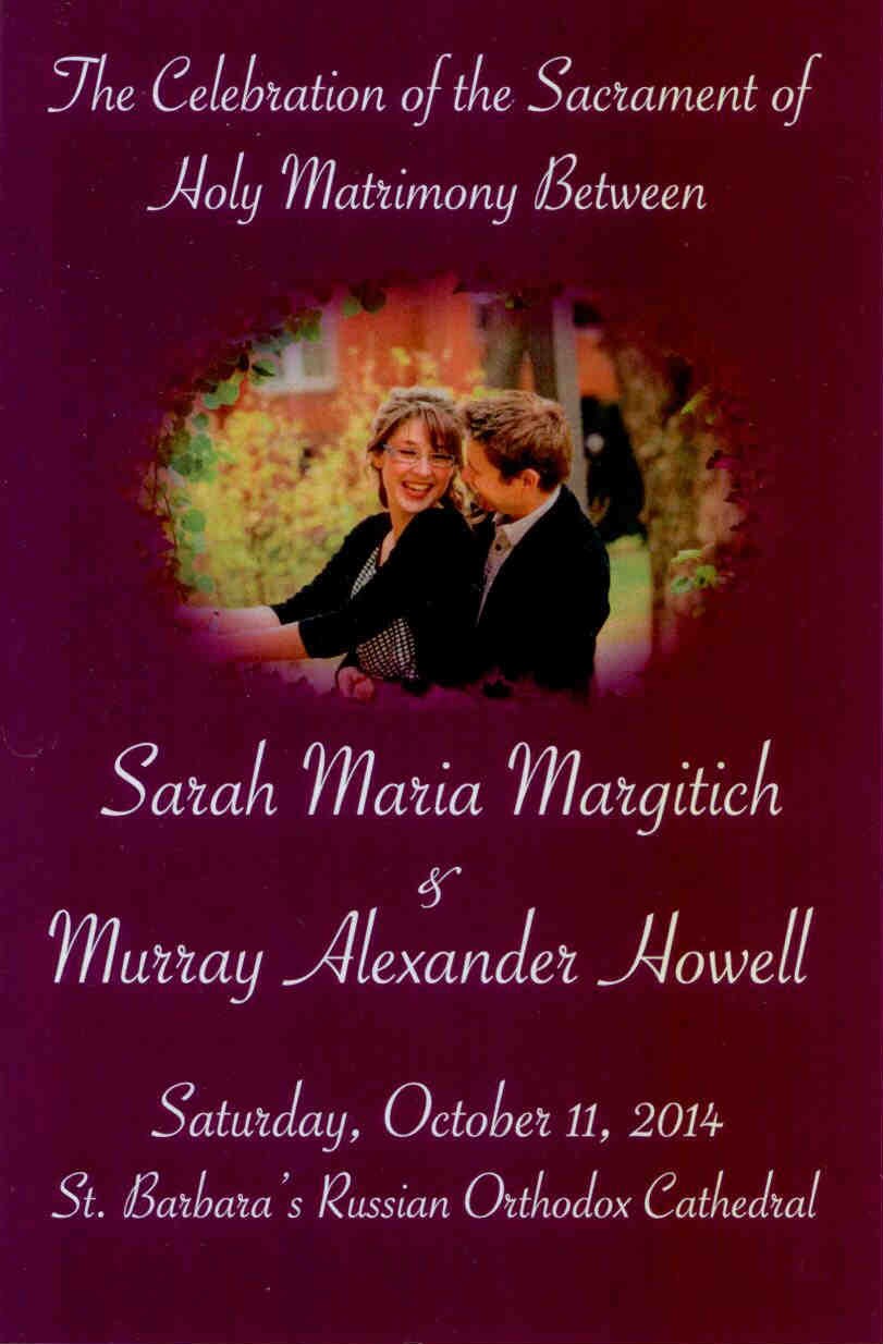 W (2) Dear in Christ Sarah Maria Margitich and Murray Alexander Howell: