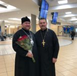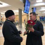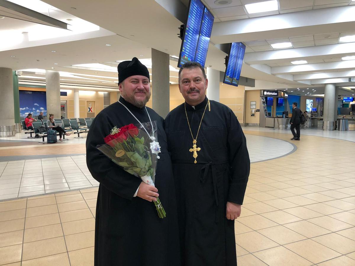 The Right Reverend Vladyka was met at the airport of Edmonton by the Dean of the Patriarchal Parishes in the provinces of Alberta and Saskatchewan, Rector of St. Barbara Cathedral, Archpriest Igor Kisil, and churchwarden Roman Lopushinsky.