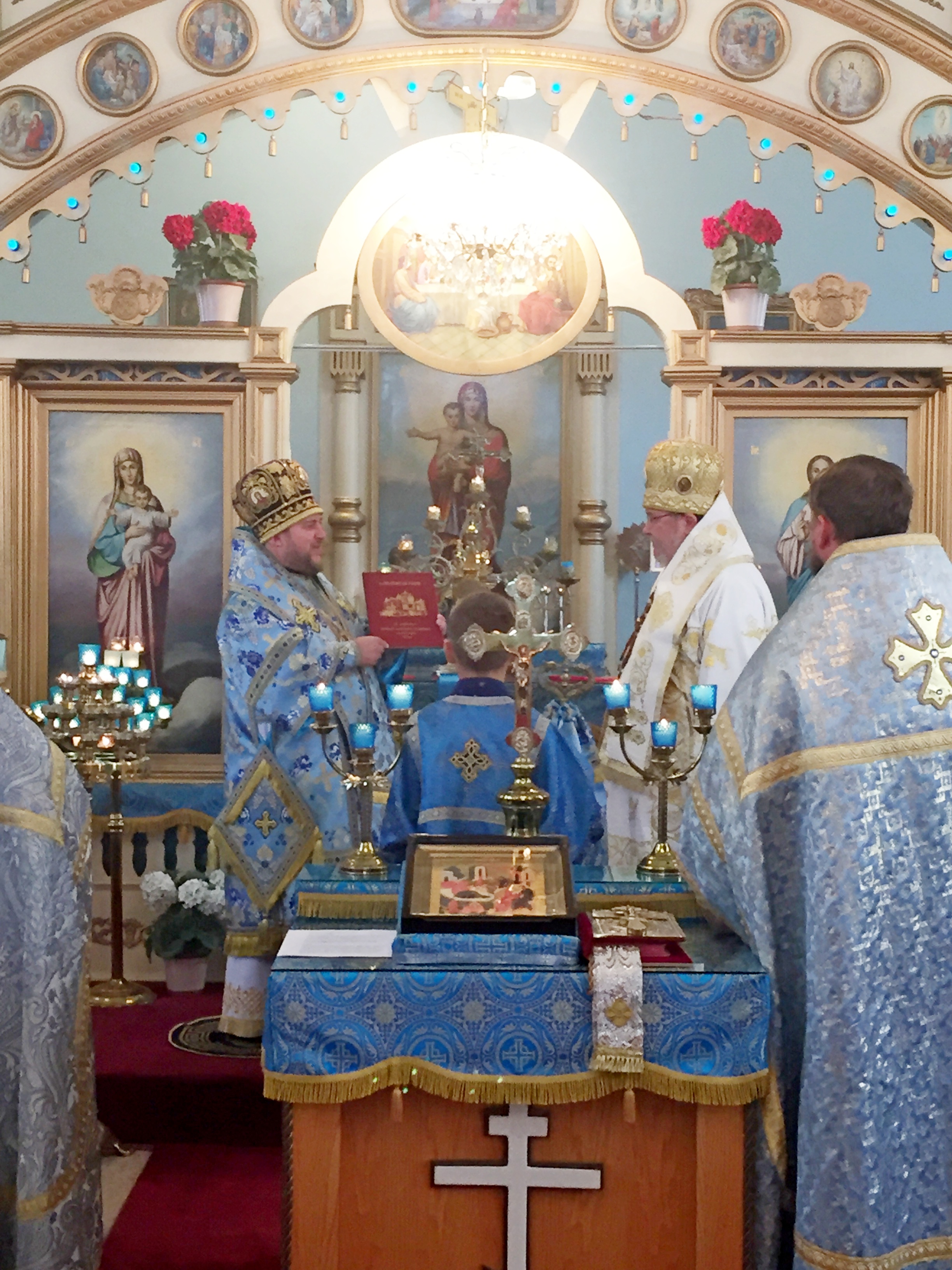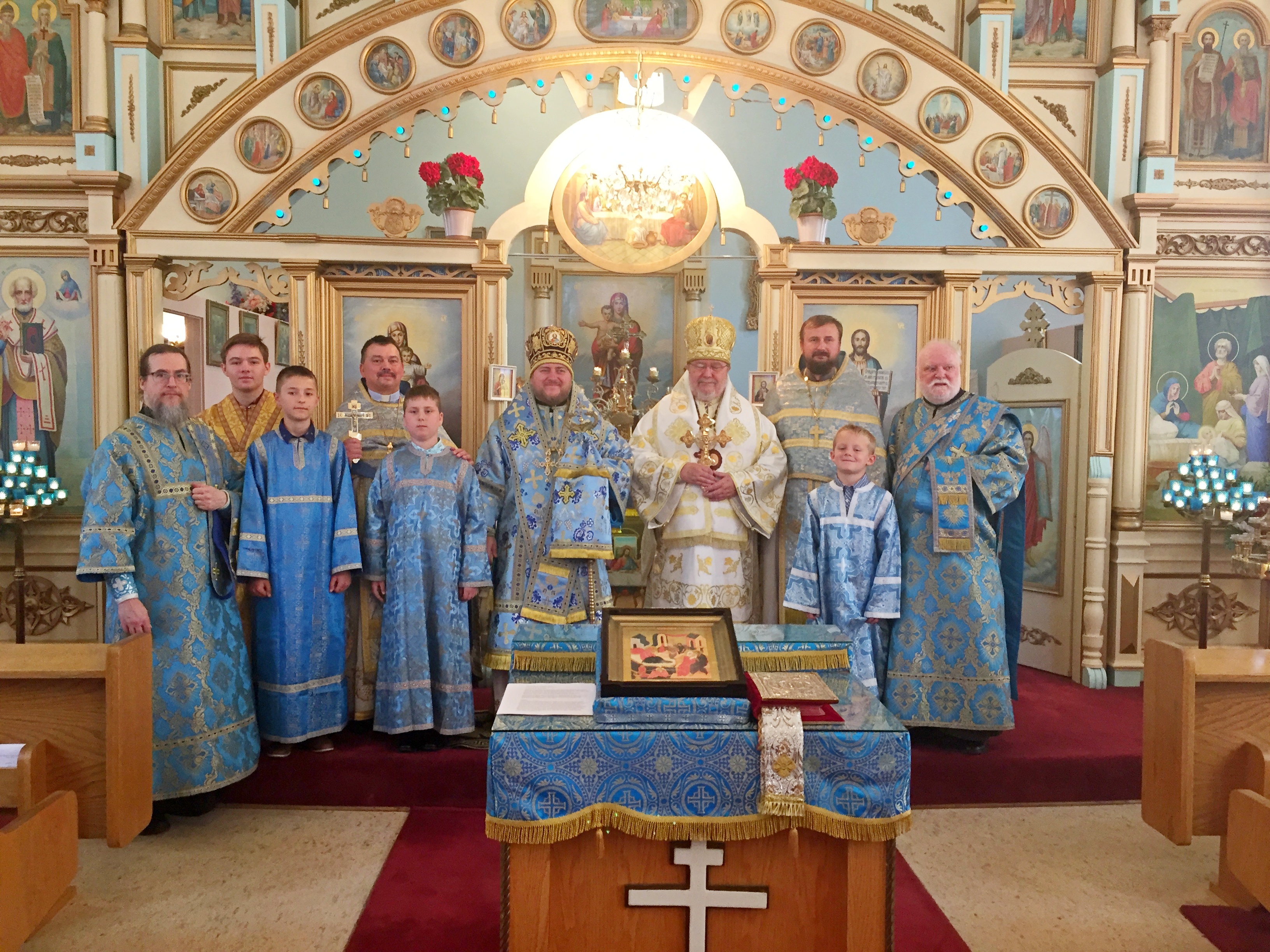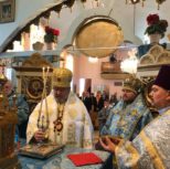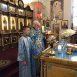 By invitation of Vladyka Matthew, Archbishop Irenaeus of Ottawa and Canada (OCA) arrived to co-celebrate the feast. During the Liturgy, the Archpastors were assisted by Archpriest Igor Kisil, Dean of the Patriarchal Parishes in the provinces of Alberta and Saskechewan, Archpriest Evgeny Protsenko, Head of the Information Department of the Patriarchal Parishes in Canada, Dean of the Church, Deacon Andrei Boldyrev and Deacon John Grigaitis.
