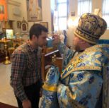 At the Matins of the all-night vigil, after the Gospel reading, Vladyka anointed clergy and parishioners with consecrated oil.