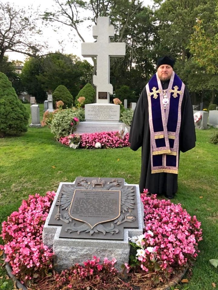 On September 24, 2019, completing his archpastoral visit to Canada, His Grace Bishop Matthew of Sourozh, temporarily Administrator of the Patriarchal parishes in the USA and Canada, served a panikhida at the resting place of Grand Duchess Olga Alexandrovna Romanova and her husband, Colonel Nikolai Kulikovsky, at the York Cemetery in Toronto.