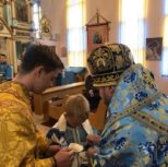 At the small entrance, the Right Reverend Vladyka honored the right to wear the orarion to the church altarnik Kirill Frankish, as a recognition of his hard work to the benefits of the church.