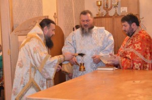 Освящение храма Петропавловского прихода в провинции Саскатчеван. » Окропление св. водой воскомастика