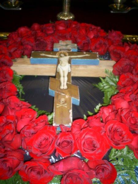 Изнесенный для поклонения Честный Крест Господень (Дар собору архиеп. Пантелеимона  Рудыка). Варваринский кафедральный собор Патриарших приходов. Эдмонтон. Канада.