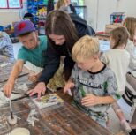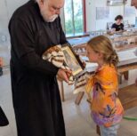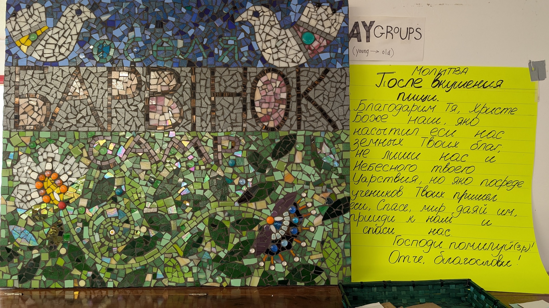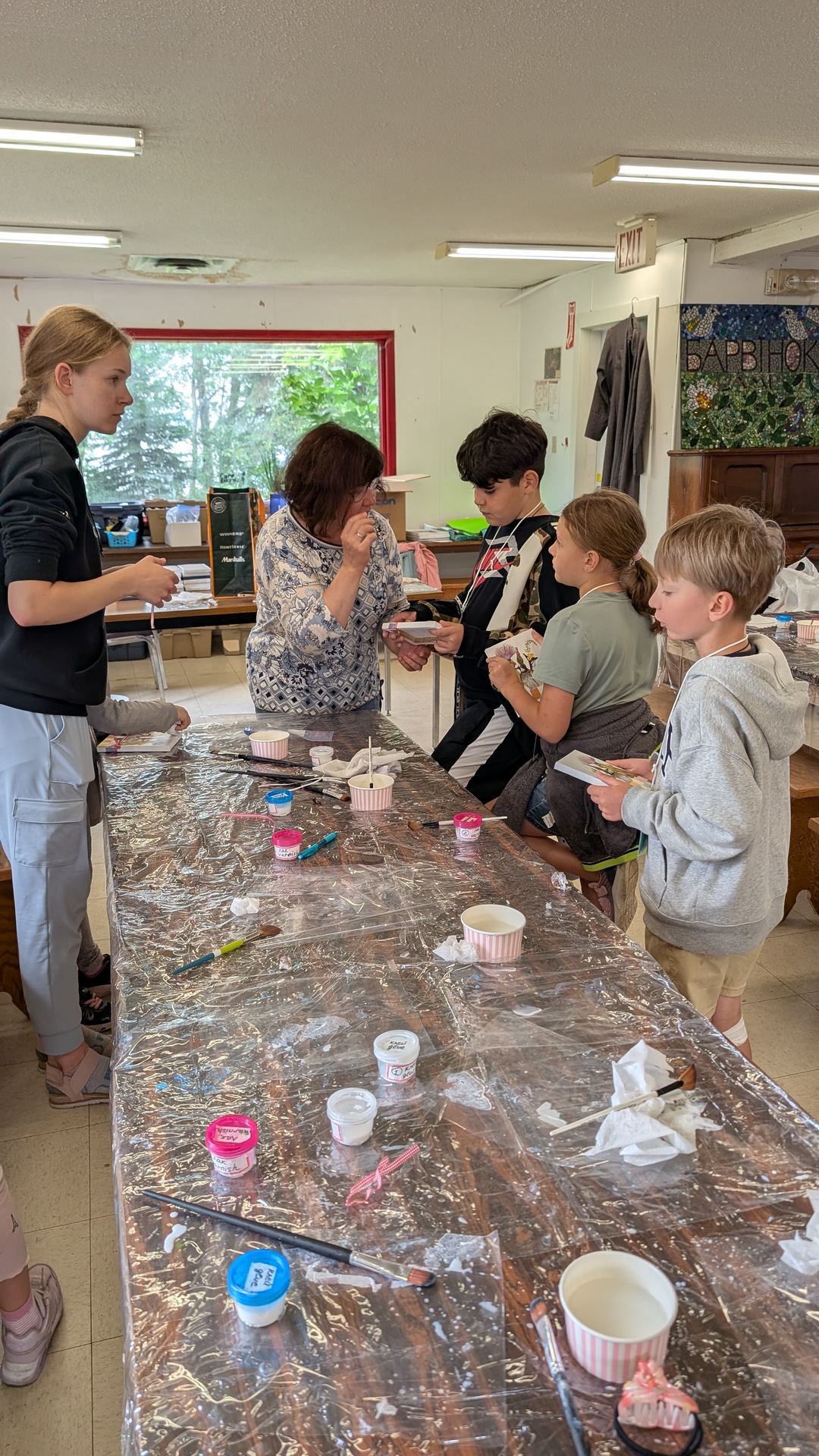 In the crafts sessions, children created true masterpieces under the guidance of Matushka Olga Protsenko, Olena Ivanova, and Svetlana Storozhenko (who also updated the large-print prayer texts for reading before and after lessons—thank you so much!).