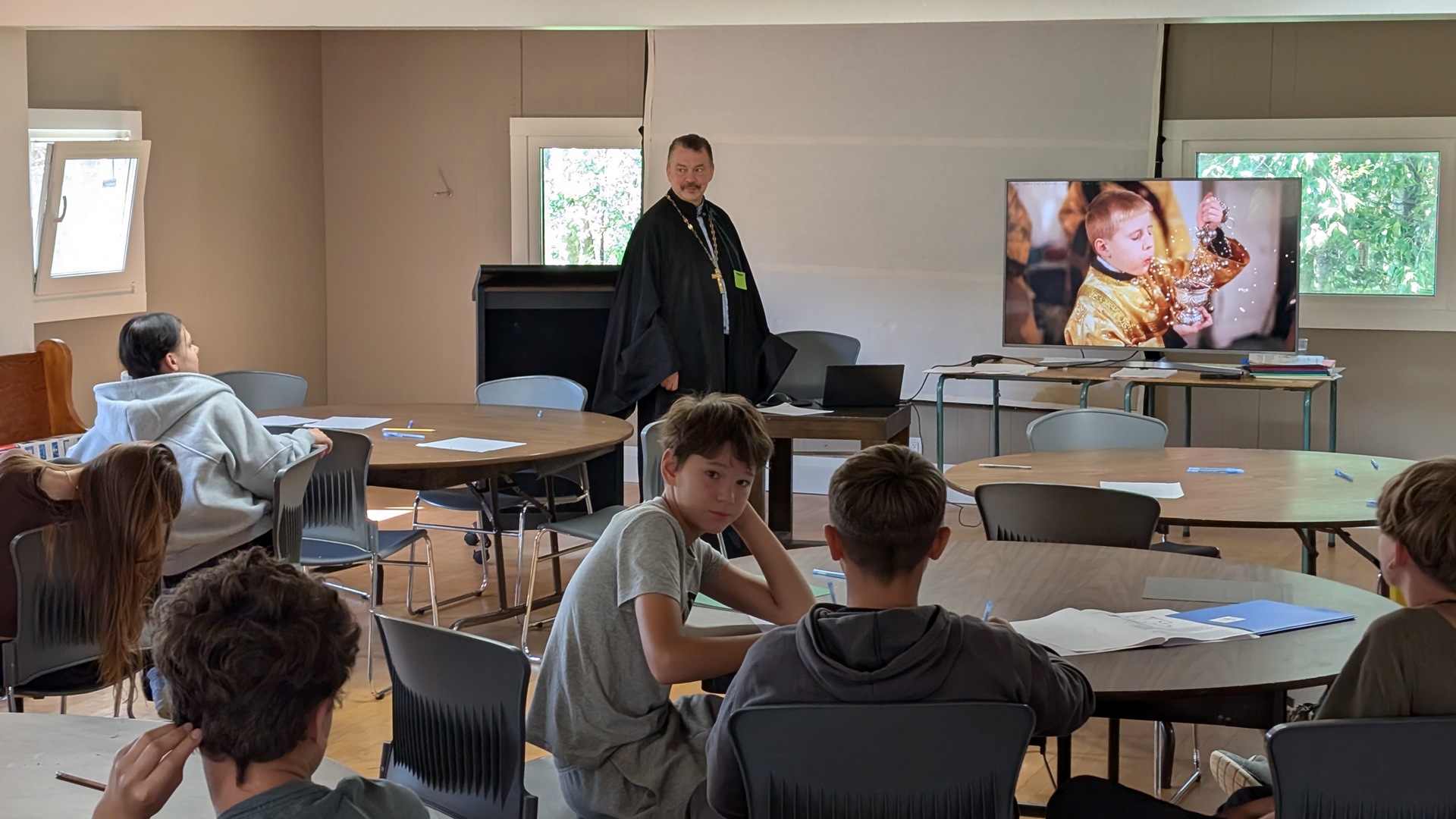 This year’s theme—”Fundamentals of Orthodox Christian Worship”—allowed the children to delve deeper into the meaning and beauty of Church life. The lessons, led by the clergy—Father Igor Kisil, Father Evgeniy Protsenko, Father Alexios Surayev, Protodeacon Andrei Boldireff—and the experienced Sunday school teacher Olena Ivanova, were not just lectures, but lively conversations with a great number of illustrations, and quizzes at the end. The children learned about the daily, weekly, and annual cycles of services, the structure of the church, and the language of the Church.